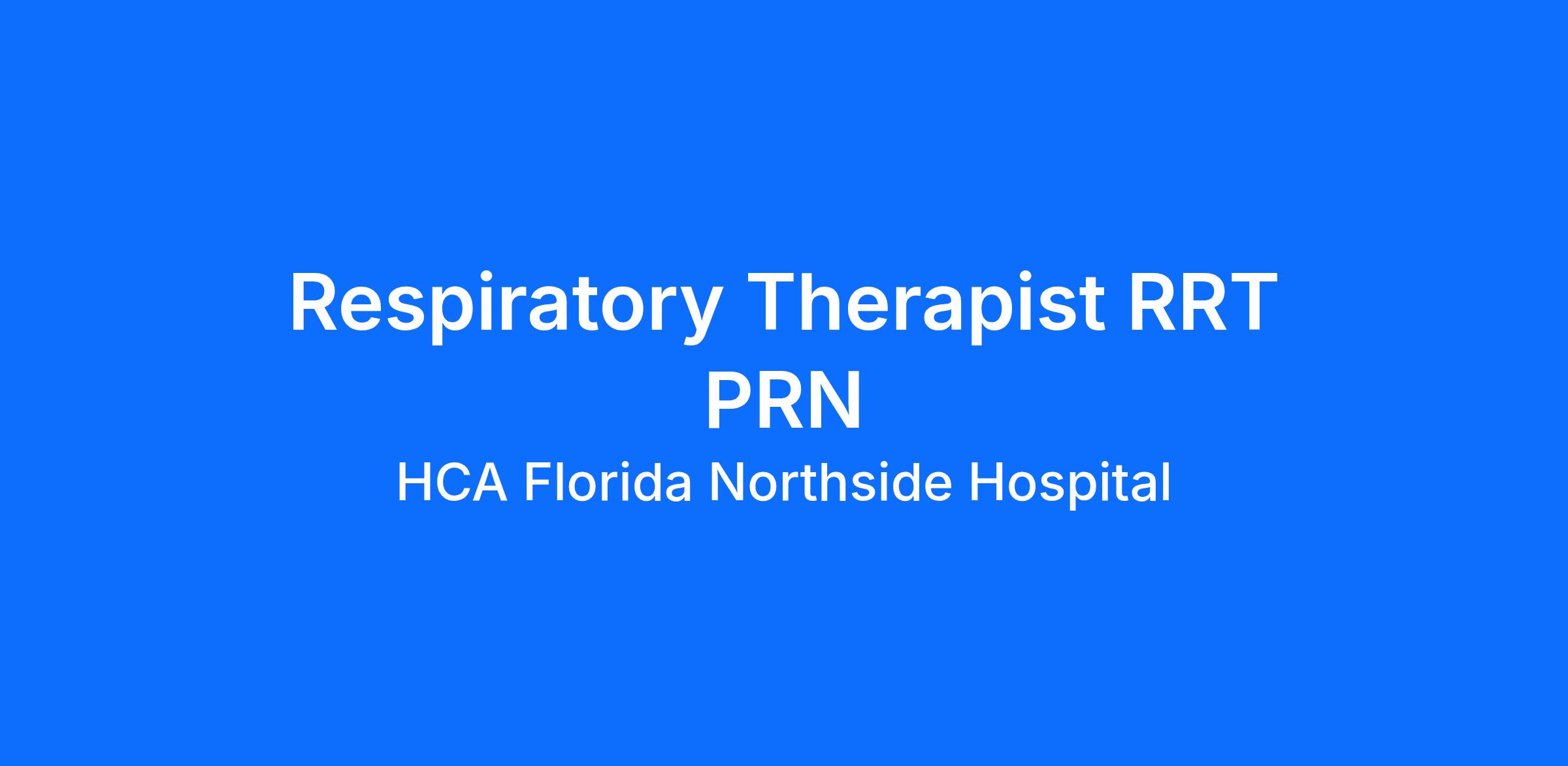 Are you passionate about the patient experience? At HCA Healthcare, we are committed to caring for patients with purpose and integrity. We care like family! Jump-start your career as a(an) Respiratory Therapist RRT PRN today with HCA Florida Northside Hospital.
