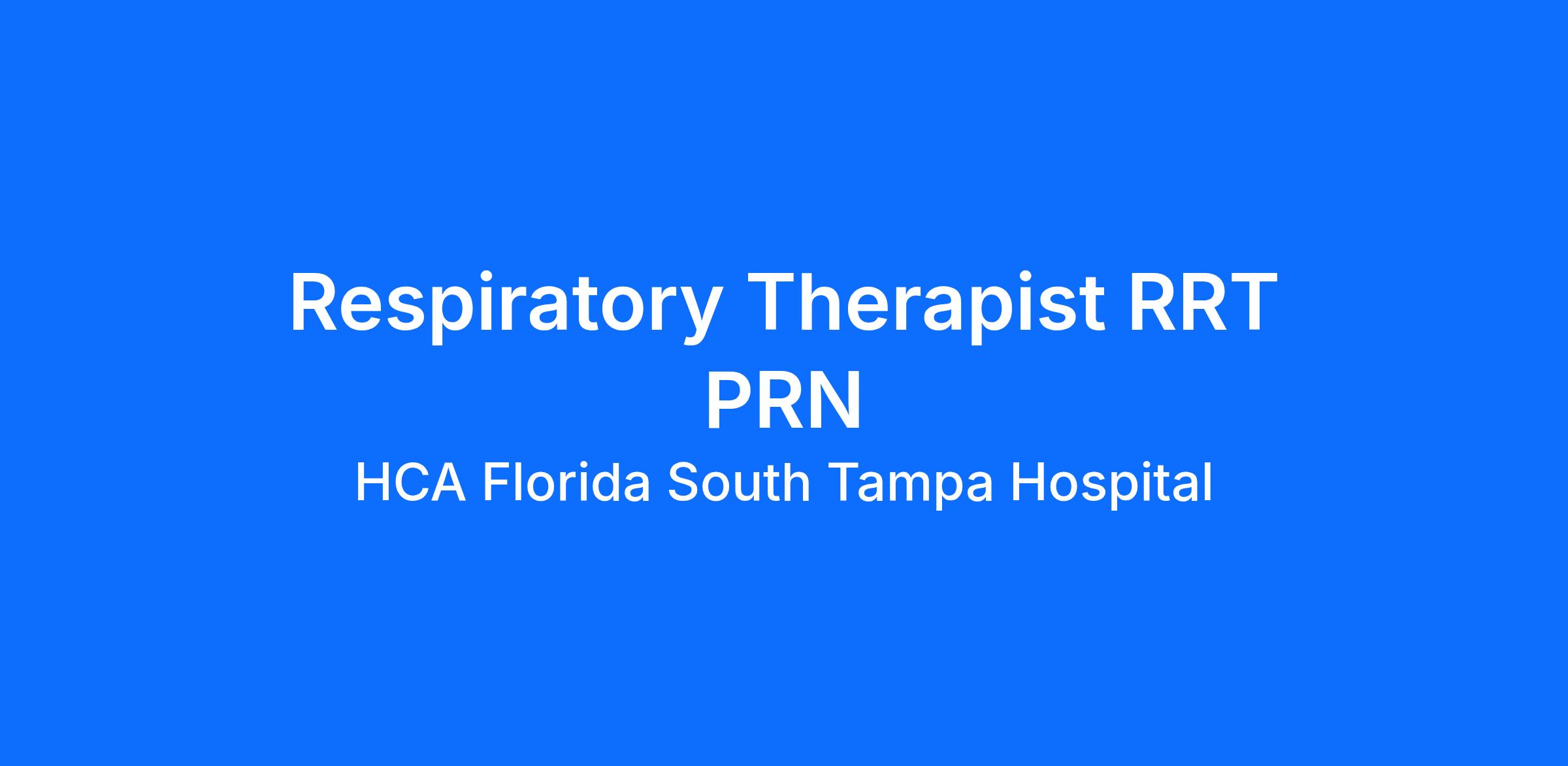 Do you have the PRN career opportunities as a(an) Respiratory Therapist RRT PRN you want with your current employer? We have an exciting opportunity for you to join HCA Florida South Tampa Hospital which is part of the nation's leading provider of healthcare services, HCA Healthcare.