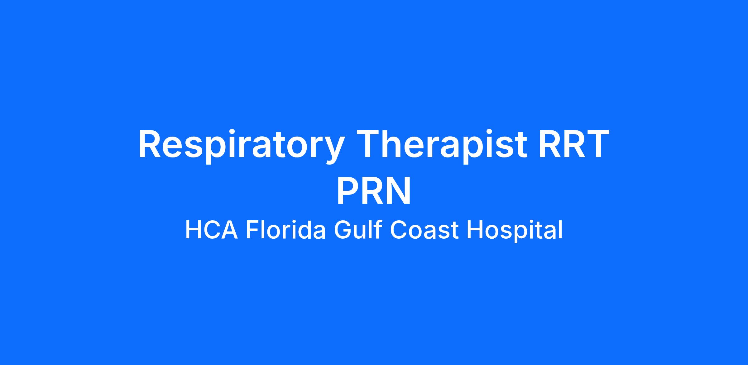 Would you like to unlock your potential with a leading healthcare provider dedicated to the growth and development of our colleagues? Join the HCA Florida Gulf Coast Hospital family! We will give you the tools and resources you need to succeed in our organization. We are looking for an enthusiastic Respiratory Therapist RRT PRN to help us reach our goals. Unlock your potential!