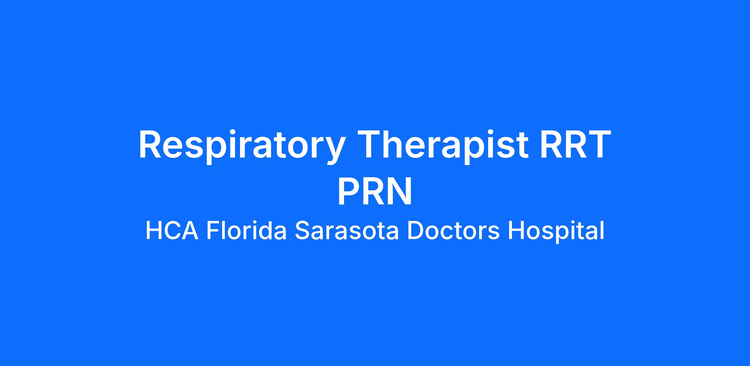 Experience the HCA Healthcare difference where colleagues are trusted, valued members of our healthcare team. Grow your career with an organization committed to delivering respectful, compassionate care, and where the unique and intrinsic worth of each individual is recognized. Submit your application for the opportunity below:Respiratory Therapist RRT PRNHCA Florida Sarasota Doctors Hospital