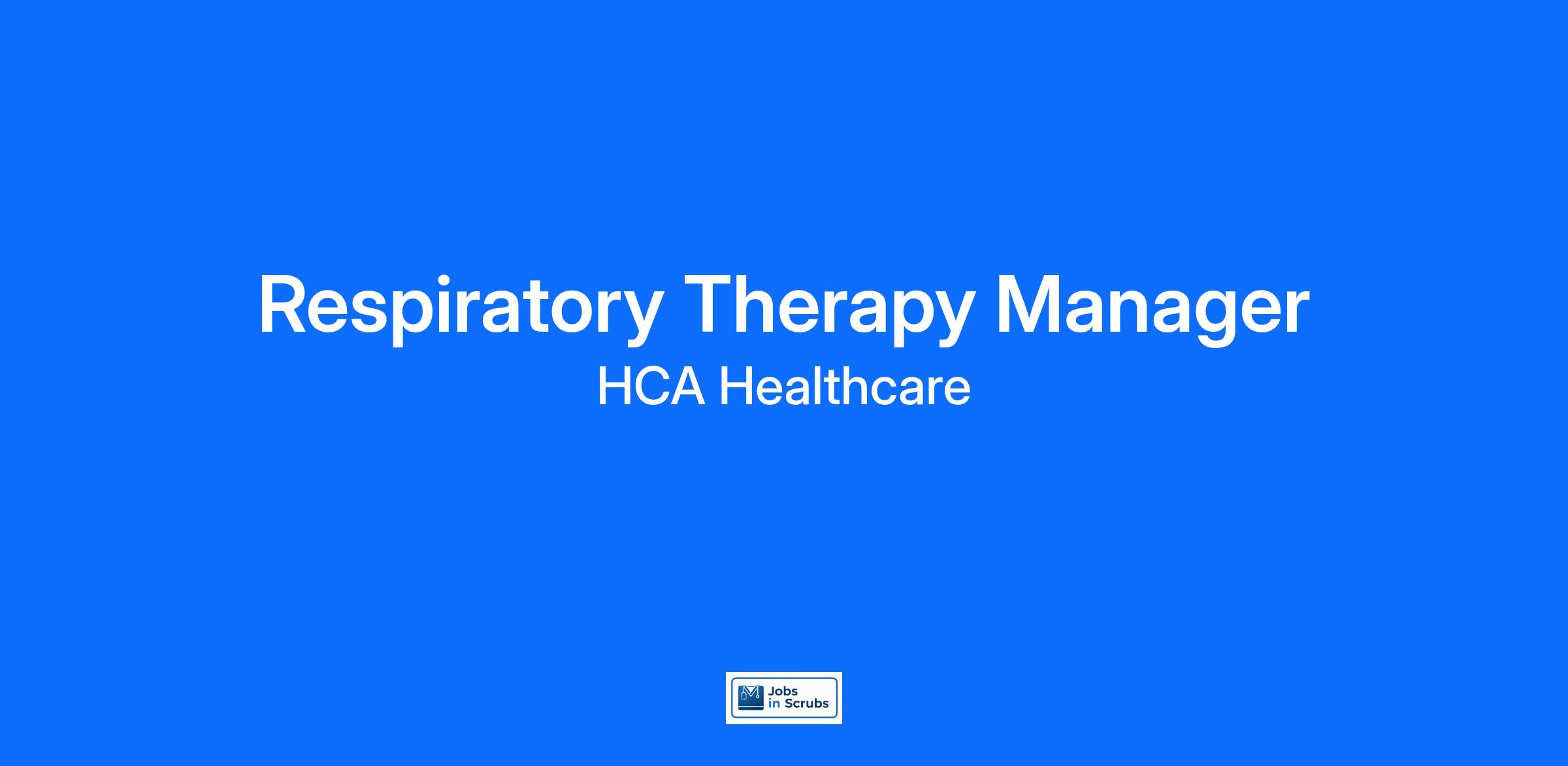 Become a manager with an organization that invests in your career while giving to the community. We are seeking distinguished applicants for our Respiratory Therapy Manager opening. Help HCA Healthcare create healthier tomorrows for patients and communities.
