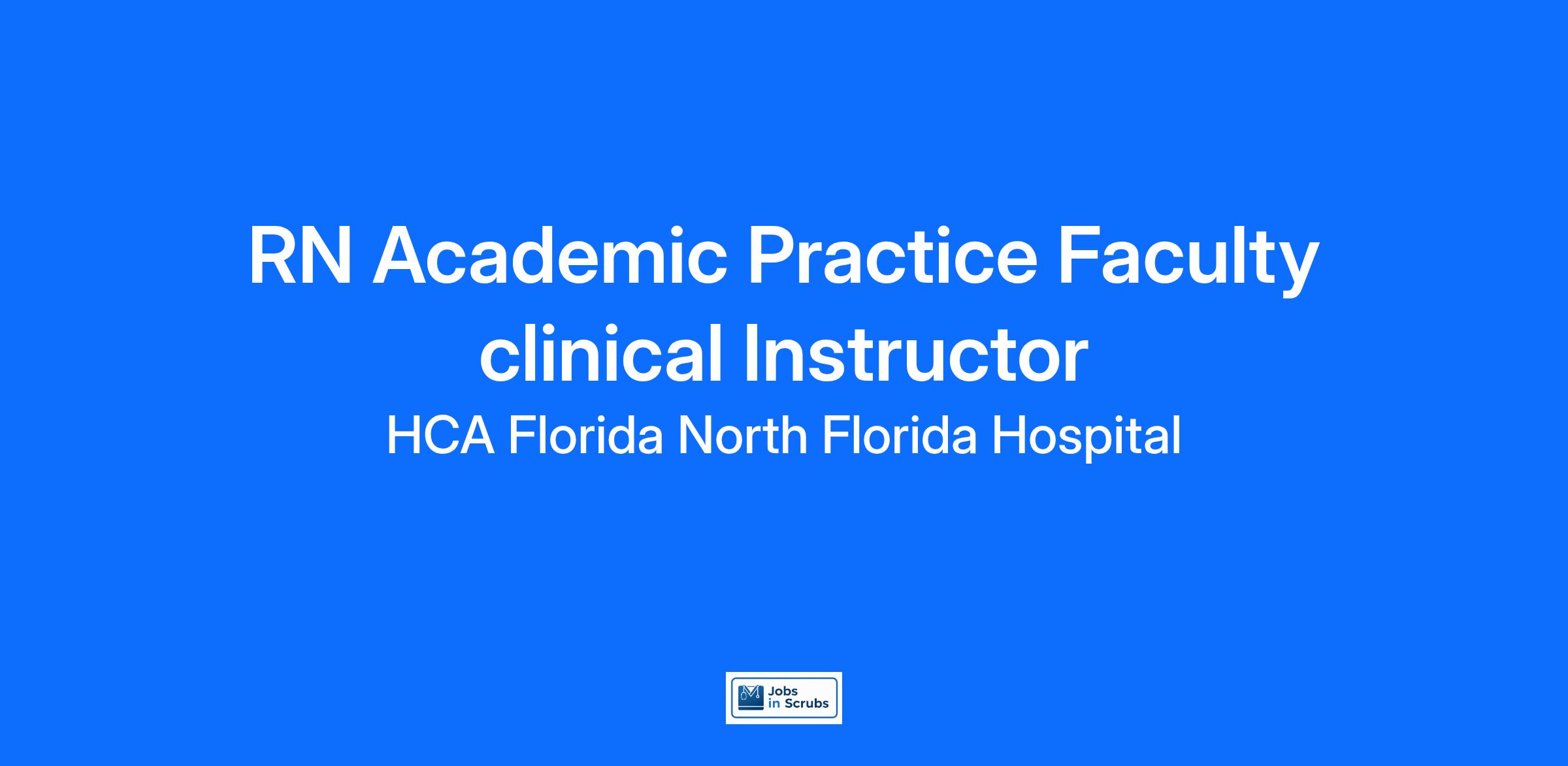 Are you looking for a place to deliver excellent care patients deserve? At HCA Florida North Florida Hospital we support our colleagues in their positions. Join our Team as a(an) RN Academic Practice Faculty clinical Instructor and access programs to assist with every stage of your career.