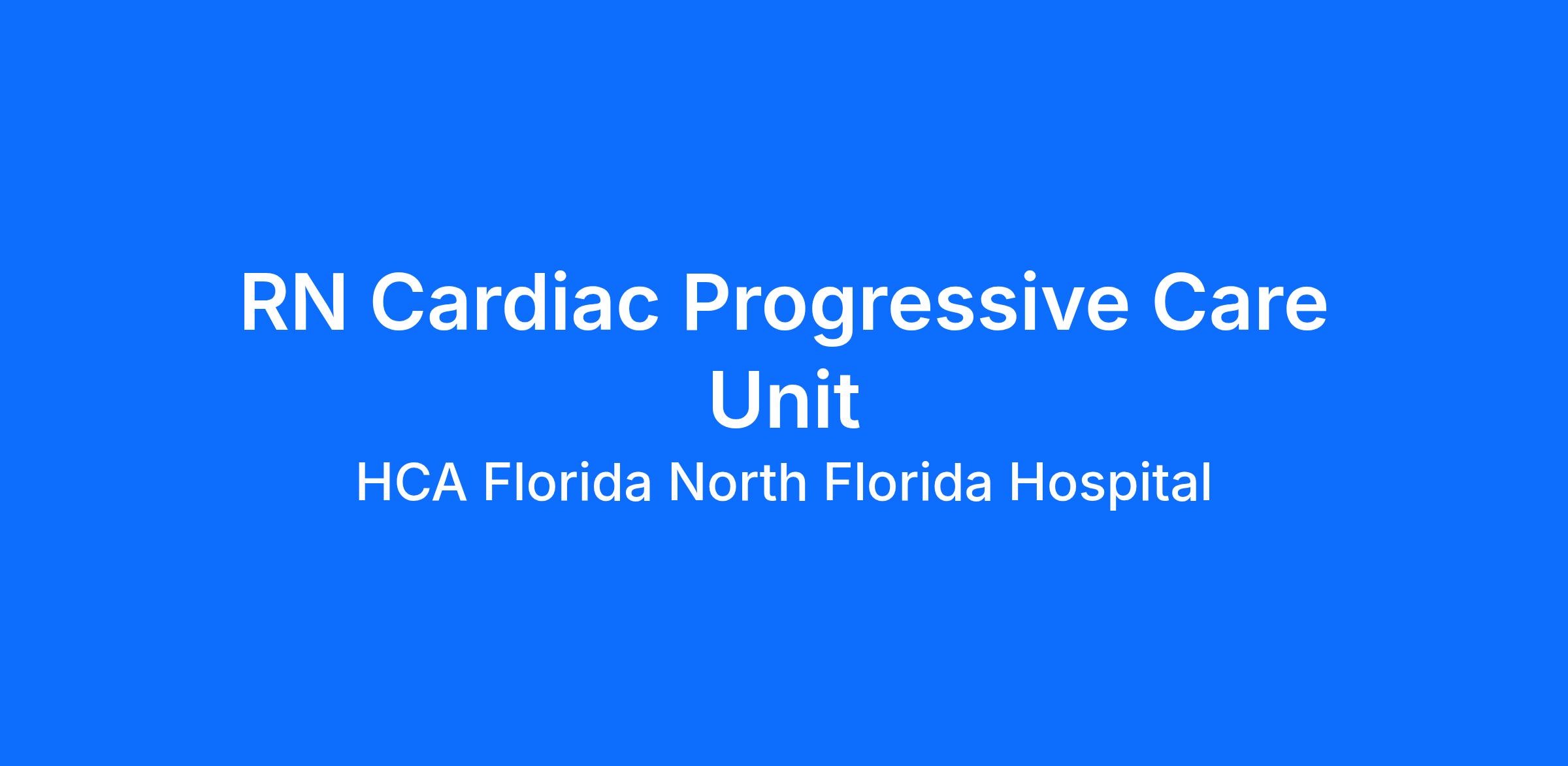 Do you currently have an opportunity to make a real impact with your work? With over 2,000 sites of care and serving over 31.2 million patient interactions every year, nurses at HCA Florida North Florida Hospital have the opportunity to make a real impact. As a(an) Registered Nurse Cardiac Progressive Care Unit you can be a part of change.