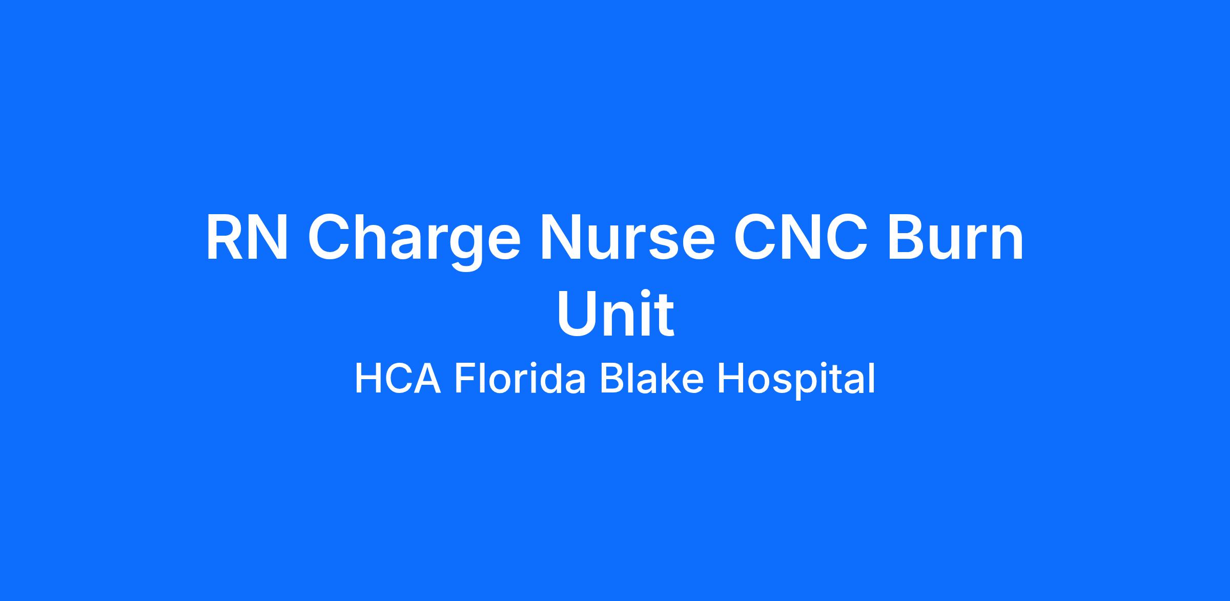 Do you currently have an opportunity to make a real impact with your work? With over 2,000 sites of care and serving over 31.2 million patient interactions every year, nurses at HCA Florida Blake Hospital have the opportunity to make a real impact. As a(an) RN Charge Nurse CNC Burn Unit you can be a part of change.