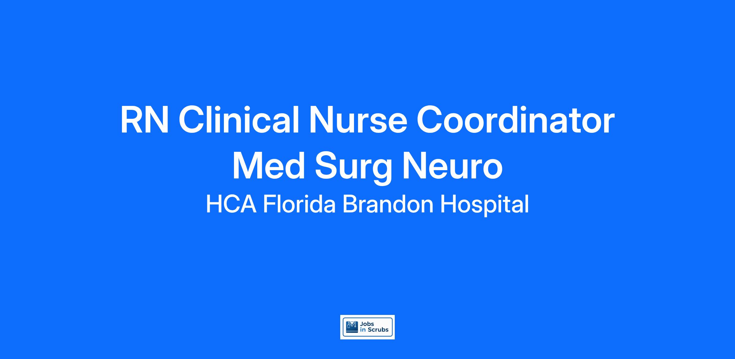 Do you want to be appreciated daily? Our nurses are celebrated for being on the front line, empathetic for patients. At HCA Florida Brandon Hospital our nurses set us apart from any other healthcare provider. We are seeking a(an) RN Clinical Nurse Coordinator Med Surg Neuro to join our healthcare family.