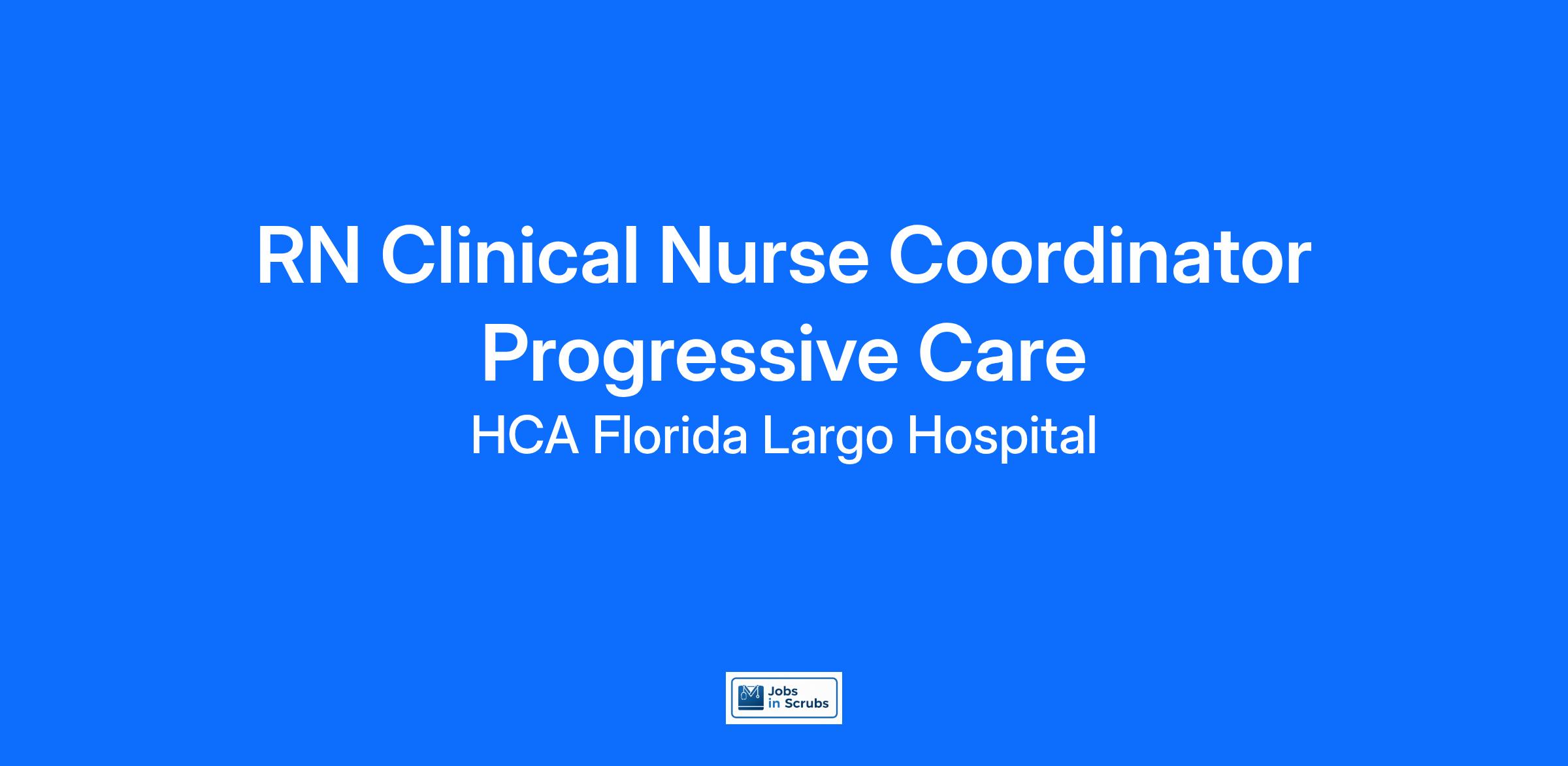 Do you want to be appreciated daily? Our nurses are celebrated for being on the front line, empathetic for patients. At HCA Florida Largo Hospital our nurses set us apart from any other healthcare provider. We are seeking a(an) RN Clinical Nurse Coordinator Progressive Care to join our healthcare family.