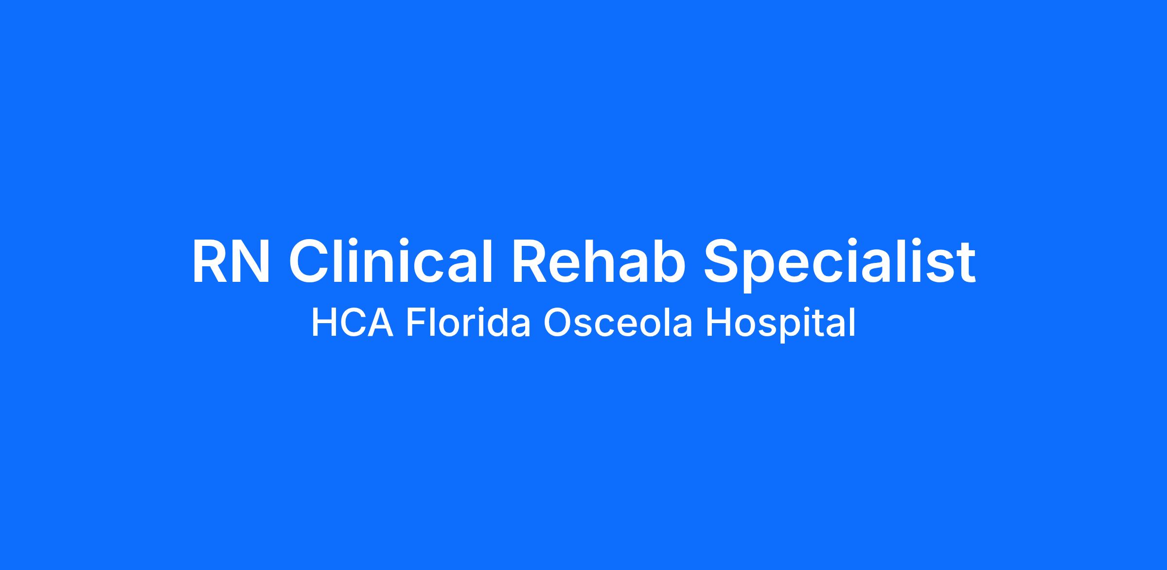 Are you passionate about the patient experience? At HCA Healthcare, we are committed to caring for patients with purpose and integrity. We care like family! Jump-start your career as a(an) RN Clinical Rehab Specialist today with HCA Florida Osceola Hospital.