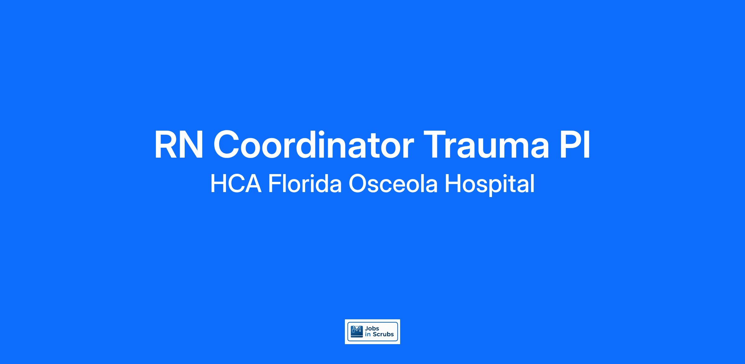Are you passionate about the patient experience? At HCA Healthcare, we are committed to caring for patients with purpose and integrity. We care like family! Jump-start your career as a(an) RN Coordinator Trauma today with HCA Florida Osceola Hospital.