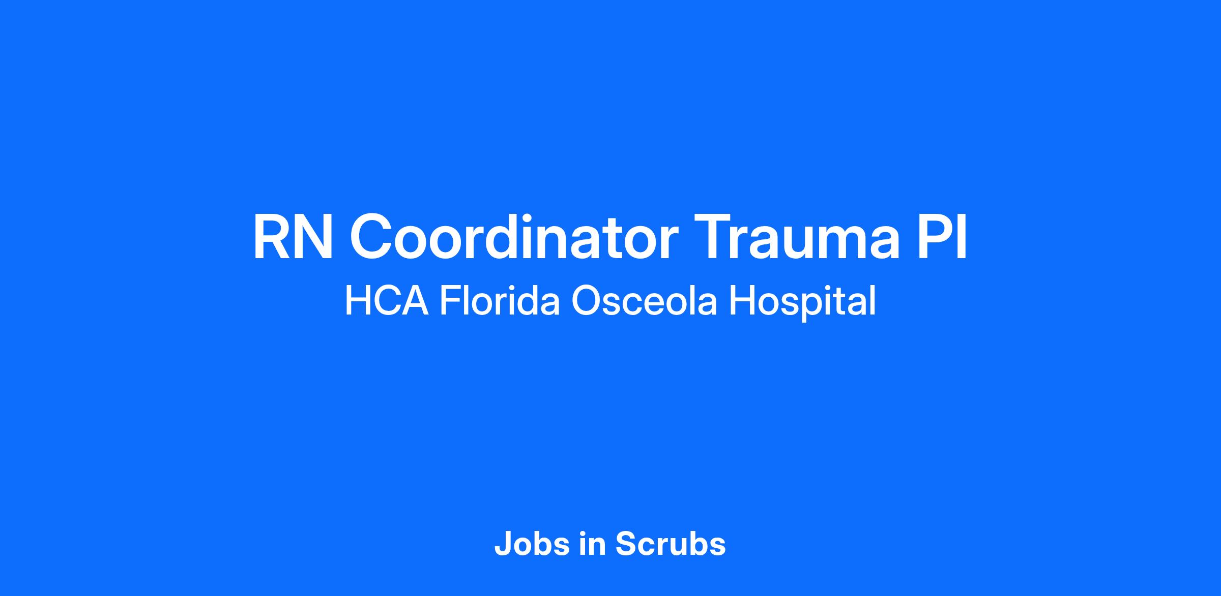 Are you passionate about the patient experience? At HCA Healthcare, we are committed to caring for patients with purpose and integrity. We care like family! Jump-start your career as a(an) RN Coordinator Trauma today with HCA Florida Osceola Hospital.