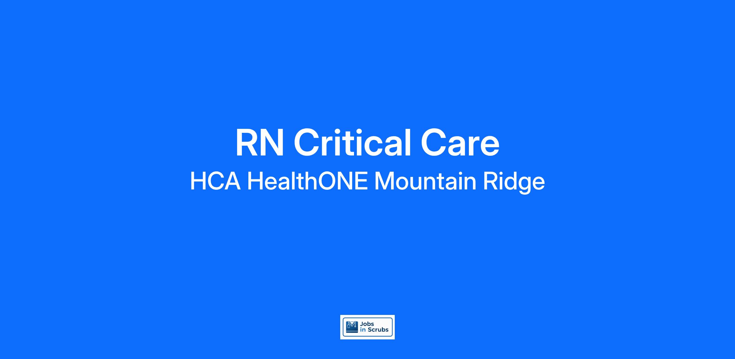 Are you looking for a place to deliver excellent care patients deserve? At HCA HealthONE Mountain Ridge we support our colleagues in their positions. Join our Team as a(an) RN Critical Care and access programs to assist with every stage of your career.
