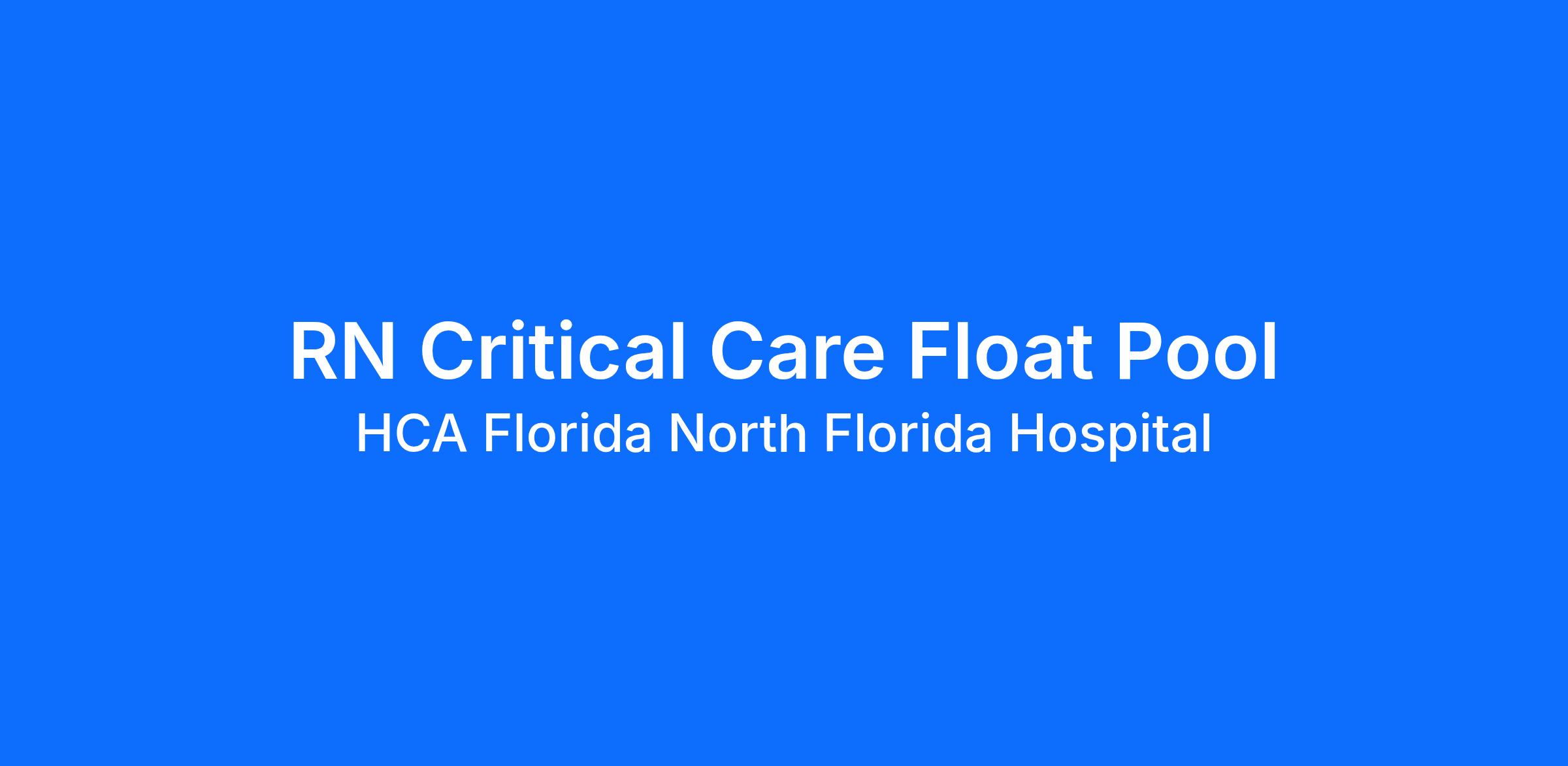 HCA Florida North Florida Hospital is committed to investing in the latest technology enabling nurses to work more efficiently. Are you passionate about delivering patient-centered care? Submit your application for RN Critical Care Float Pool position and spend more time at the bedside with the patient.