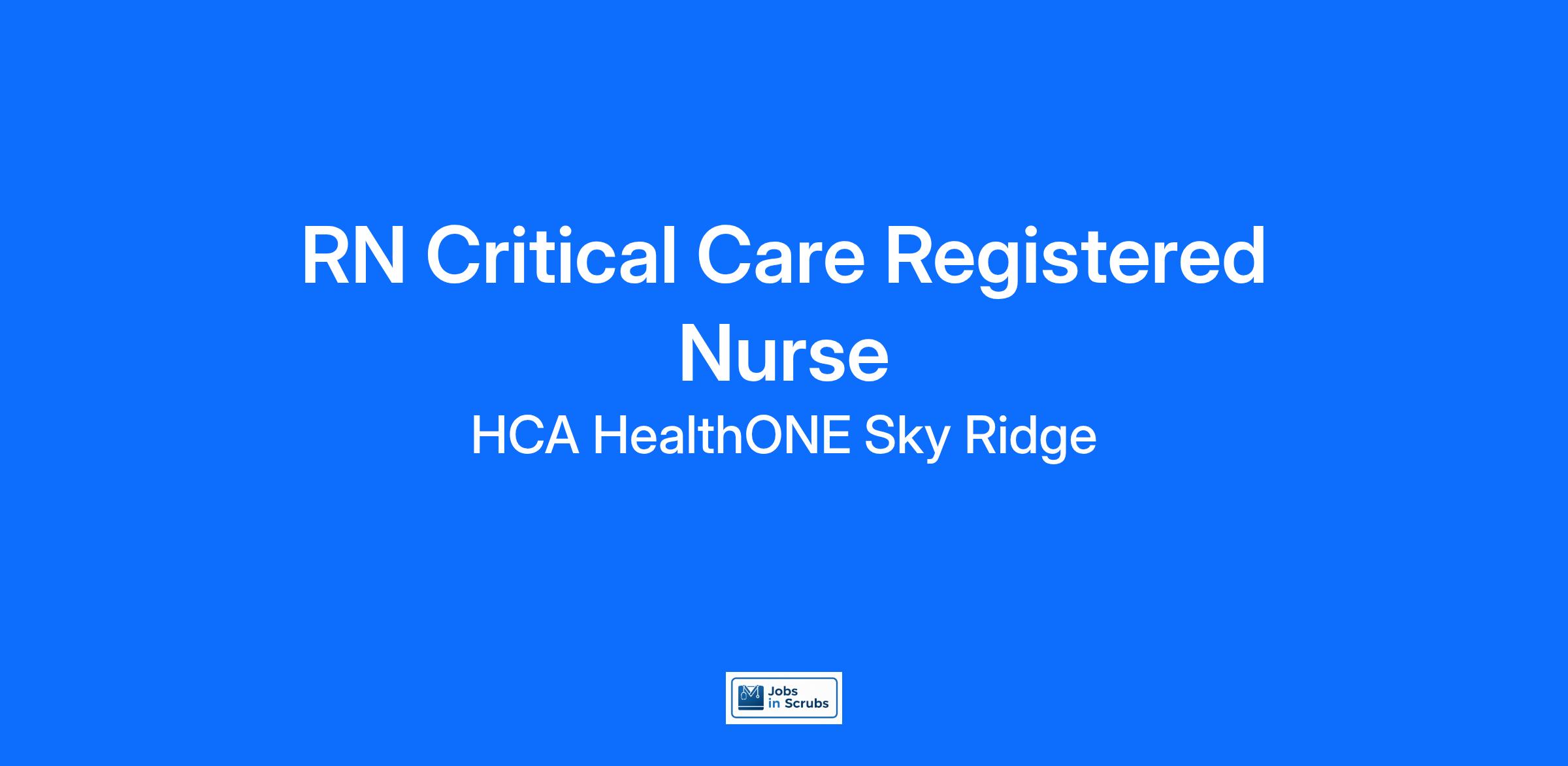 Do you currently have an opportunity to make a real impact with your work? With over 2,000 sites of care and serving over 31.2 million patient interactions every year, nurses at HCA HealthONE Sky Ridge have the opportunity to make a real impact. As a(an) RN Critical Care Registered Nurse you can be a part of change.