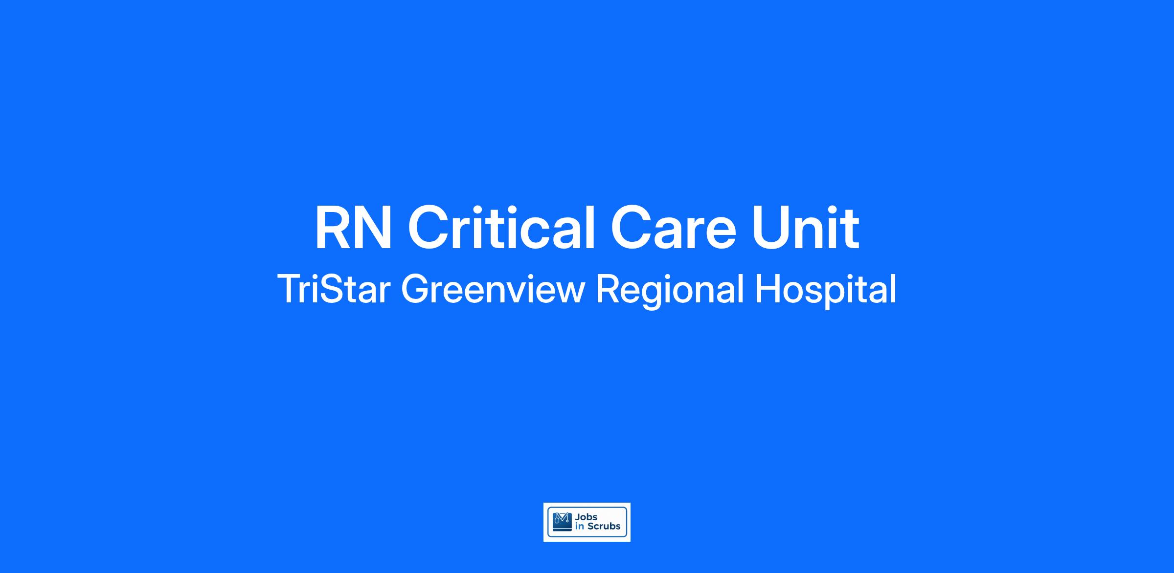 Do you have the career opportunities as a(an) ICU Nurse you want with your current employer? We have an exciting opportunity for you to join TriStar Greenview Regional Hospital which is part of the nation's leading provider of healthcare services, HCA Healthcare.