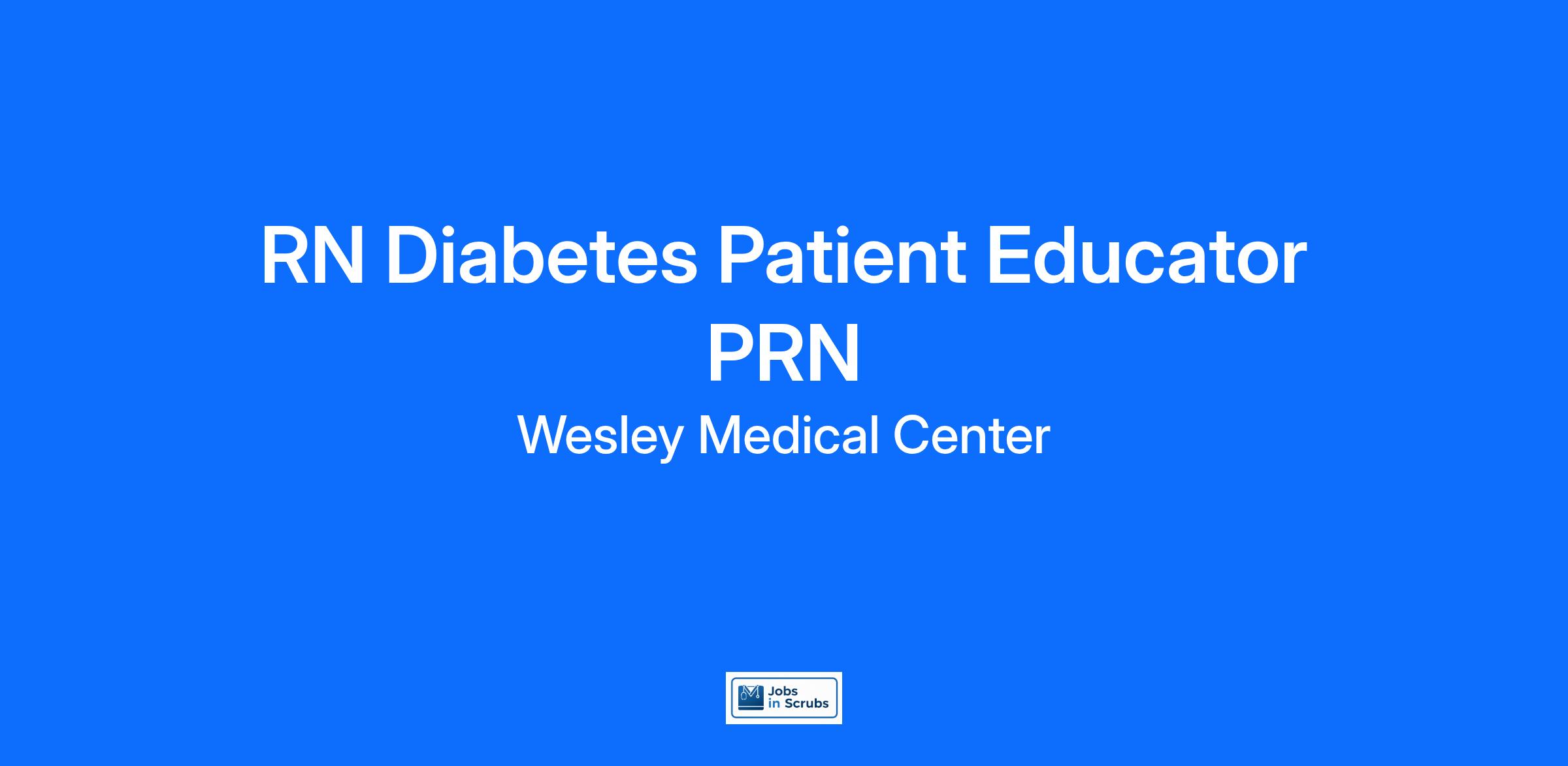 Do you currently have an opportunity to make a real impact with your work? With over 2,000 sites of care and serving over 31.2 million patient interactions every year, nurses at Wesley Medical Center have the opportunity to make a real impact. As a(an) RN Diabetes Patient Educator PRN you can be a part of change.