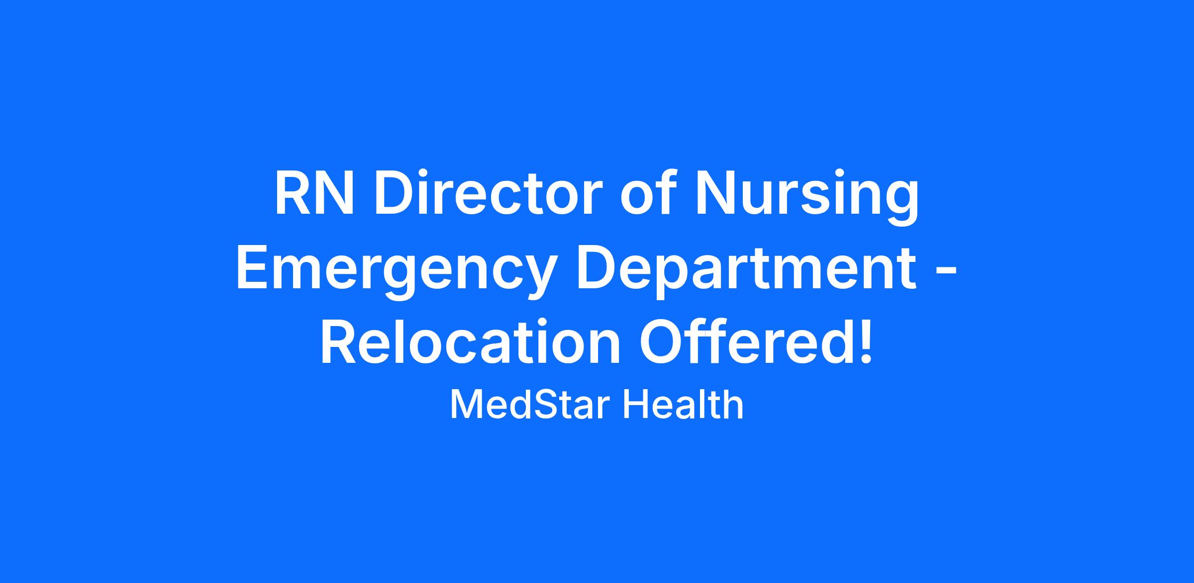 RN Director of Nursing Emergency Department - Relocation Offered!