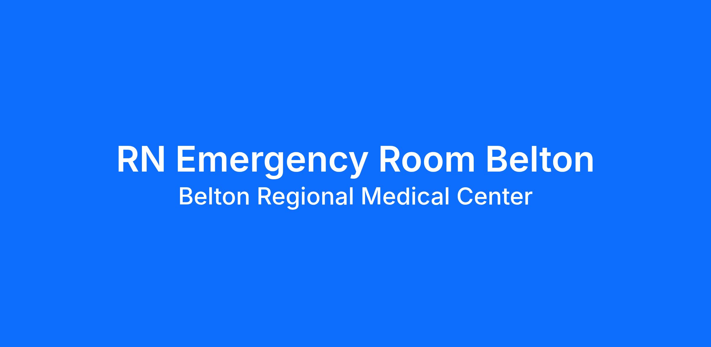 Do you want to be appreciated daily? Our nurses are celebrated for being on the front line, empathetic for patients. At Belton Regional Medical Center our nurses set us apart from any other healthcare provider. We are seeking a RN Emergency Room to join our healthcare family.