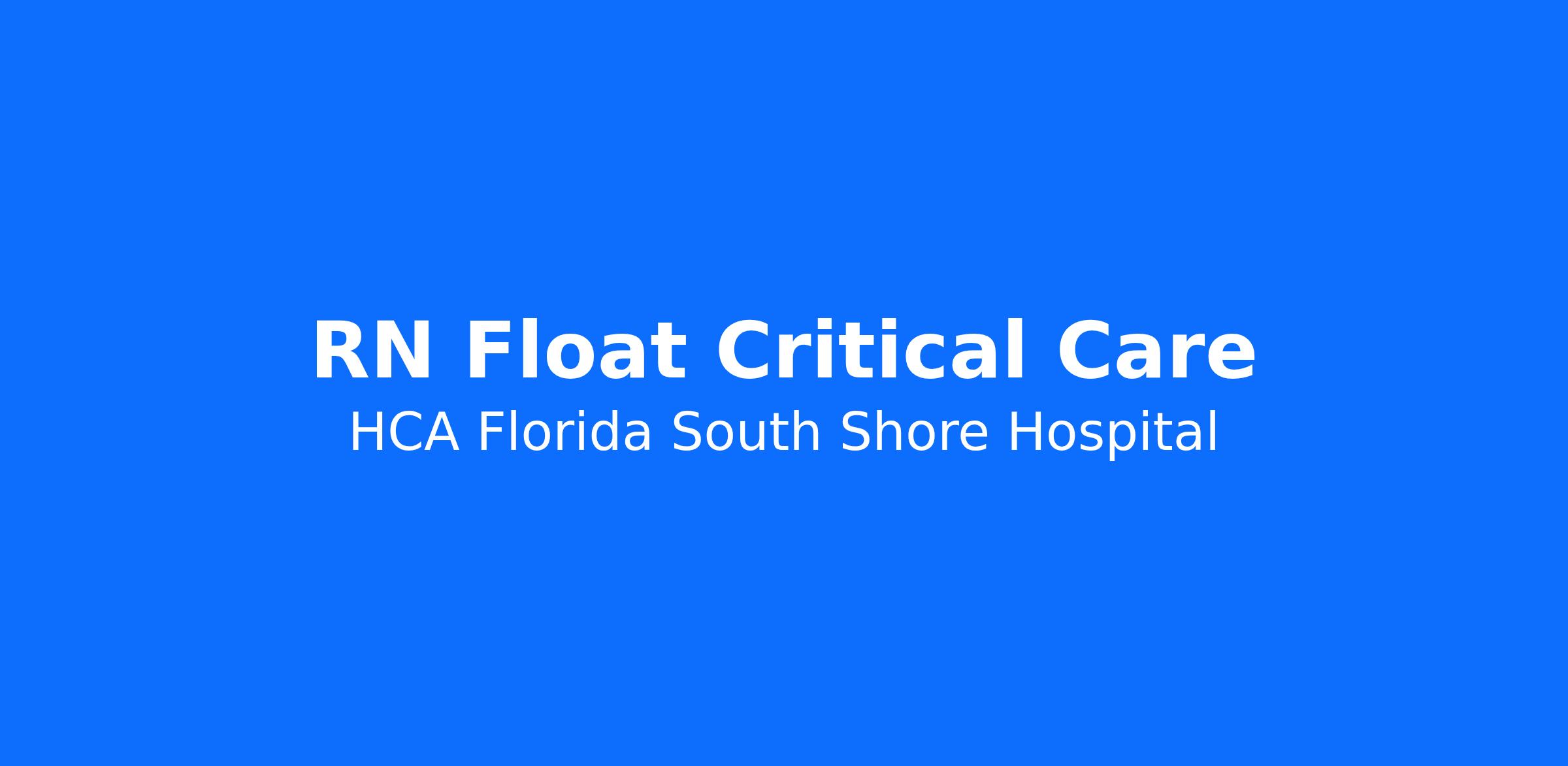 HCA Florida South Shore Hospital is committed to investing in the latest technology enabling nurses to work more efficiently. Are you passionate about delivering patient-centered care? Submit your application for RN Float Critical Care position and spend more time at the bedside with the patient.