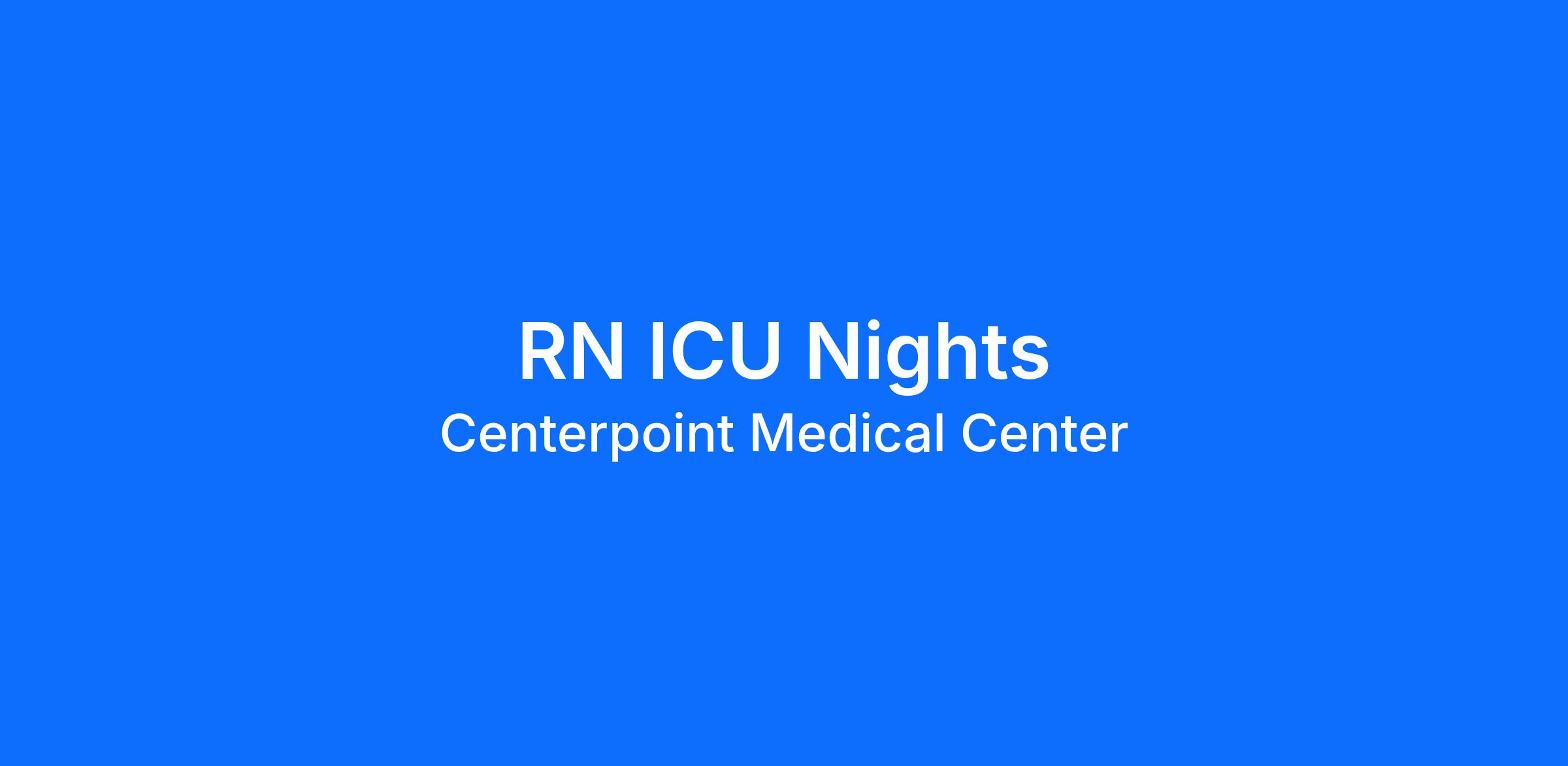 Do you have the career opportunities as a RN ICU Nights you want in your current role? We invest in what matters most to nurses like you – at home, at work, and at every stage in your career. We have an exciting opportunity for you to join Centerpoint Medical Center which is a part of the nation’s leading provider of healthcare services, HCA Healthcare.