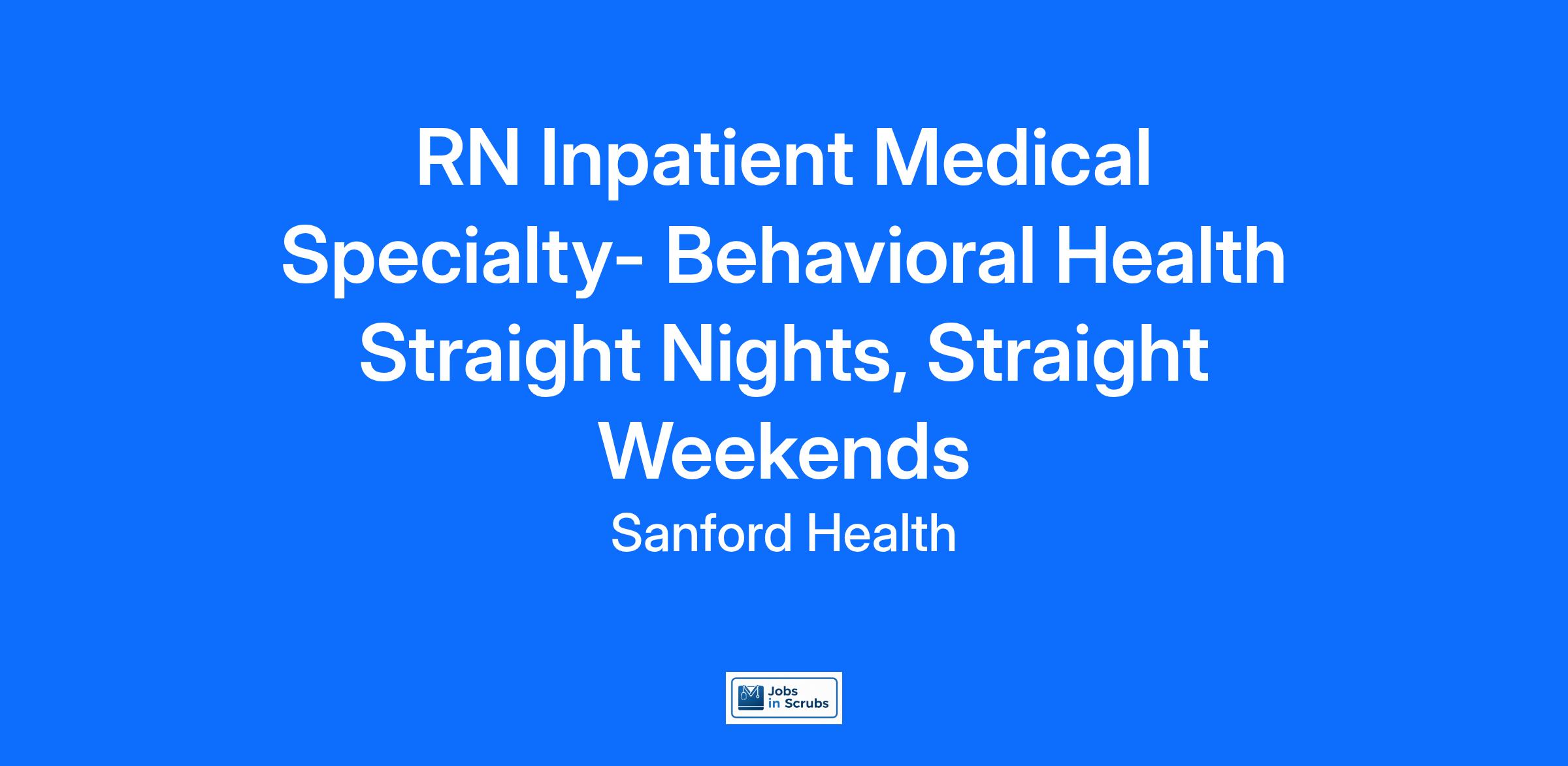 RN Inpatient Medical Specialty- Behavioral Health Straight Nights, Straight Weekends