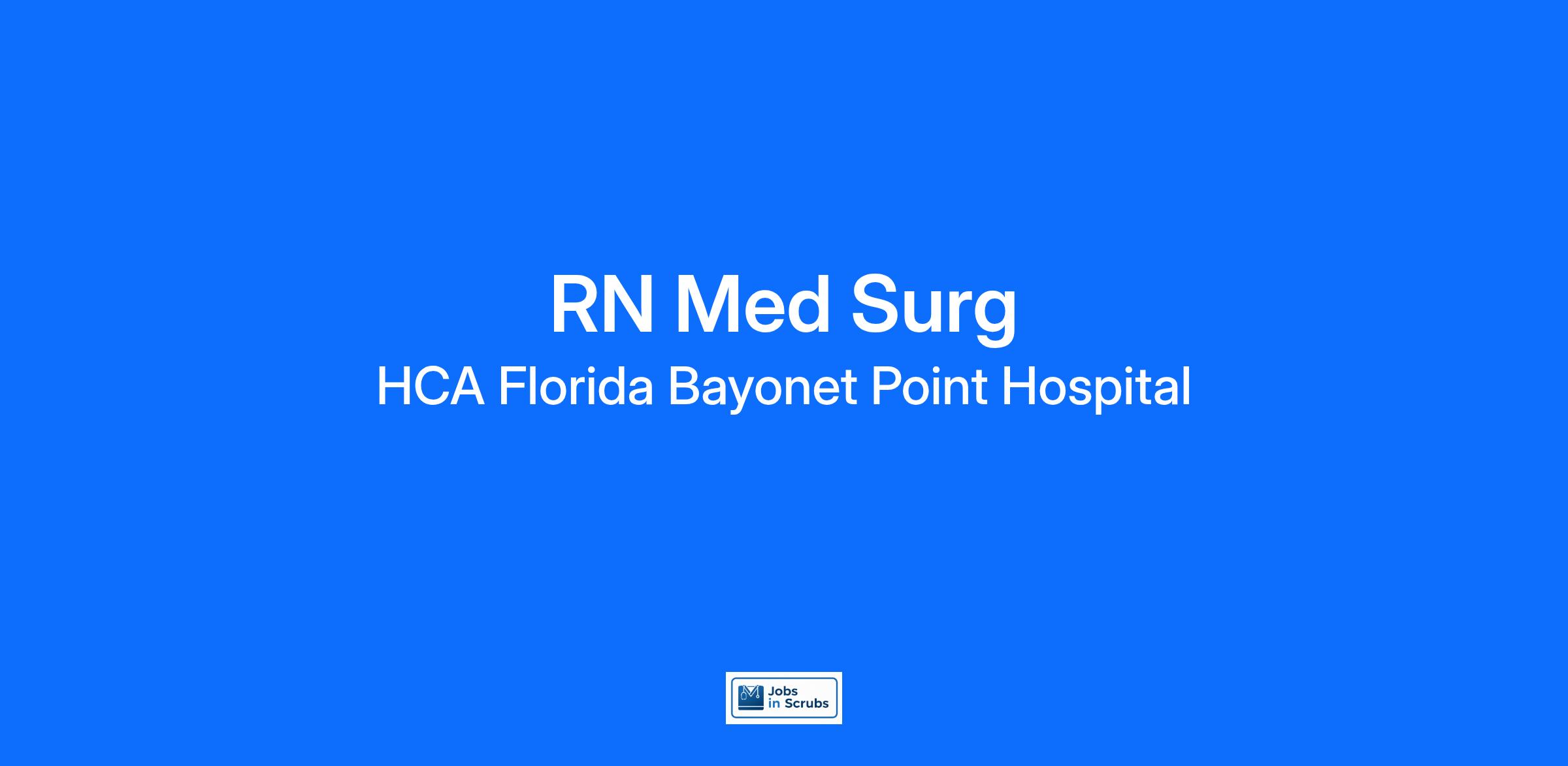 Do you currently have an opportunity to make a real impact with your work? With over 2,000 sites of care and serving over 31.2 million patient interactions every year, nurses at HCA Florida Bayonet Point Hospital have the opportunity to make a real impact. As a(an) RN Med Surg you can be a part of change.