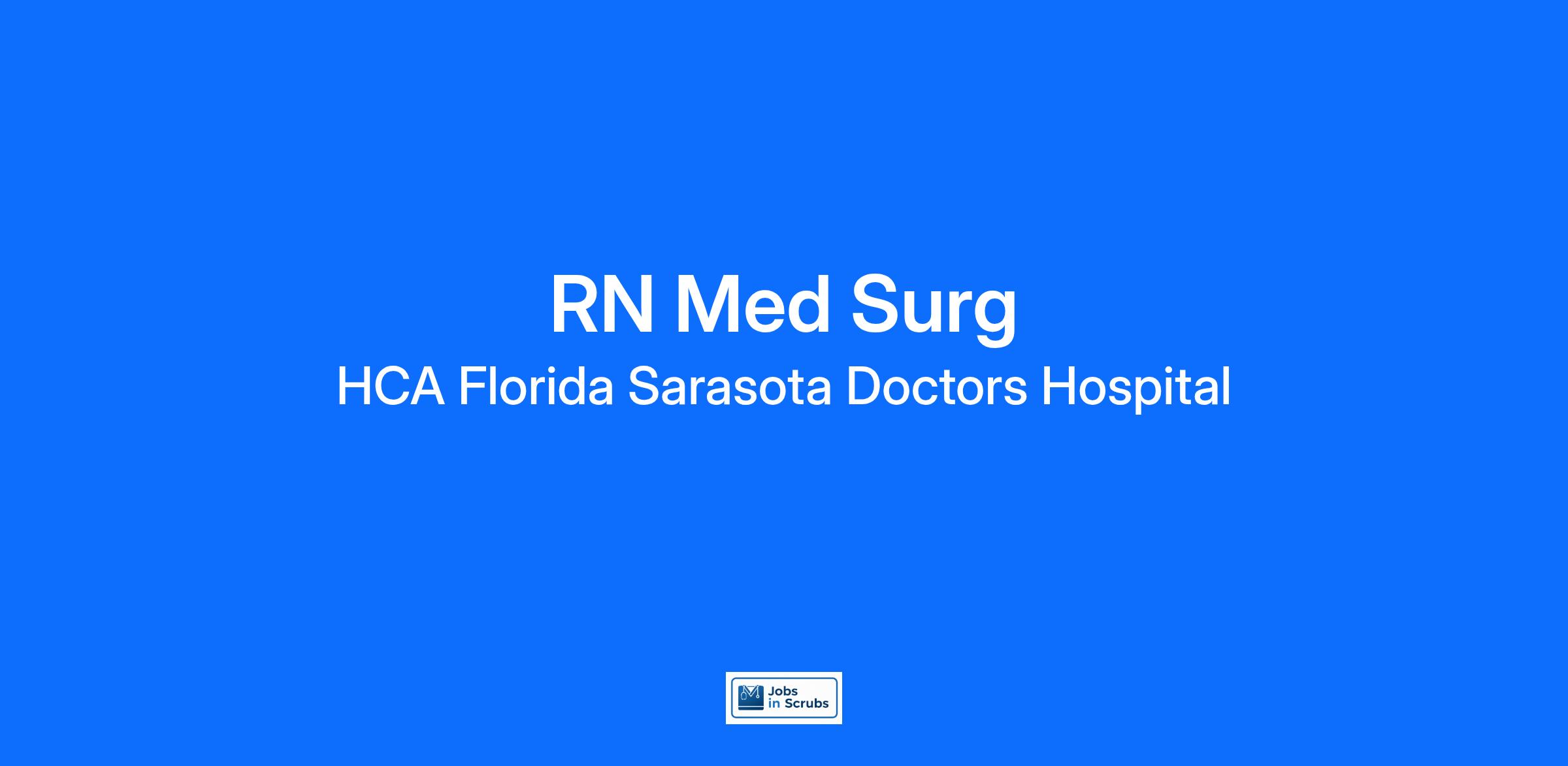 Are you looking for a place to deliver excellent care patients deserve? At HCA Florida Sarasota Doctors Hospital we support our colleagues in their positions. Join our Team as a(an) RN Med Surg and access programs to assist with every stage of your career.