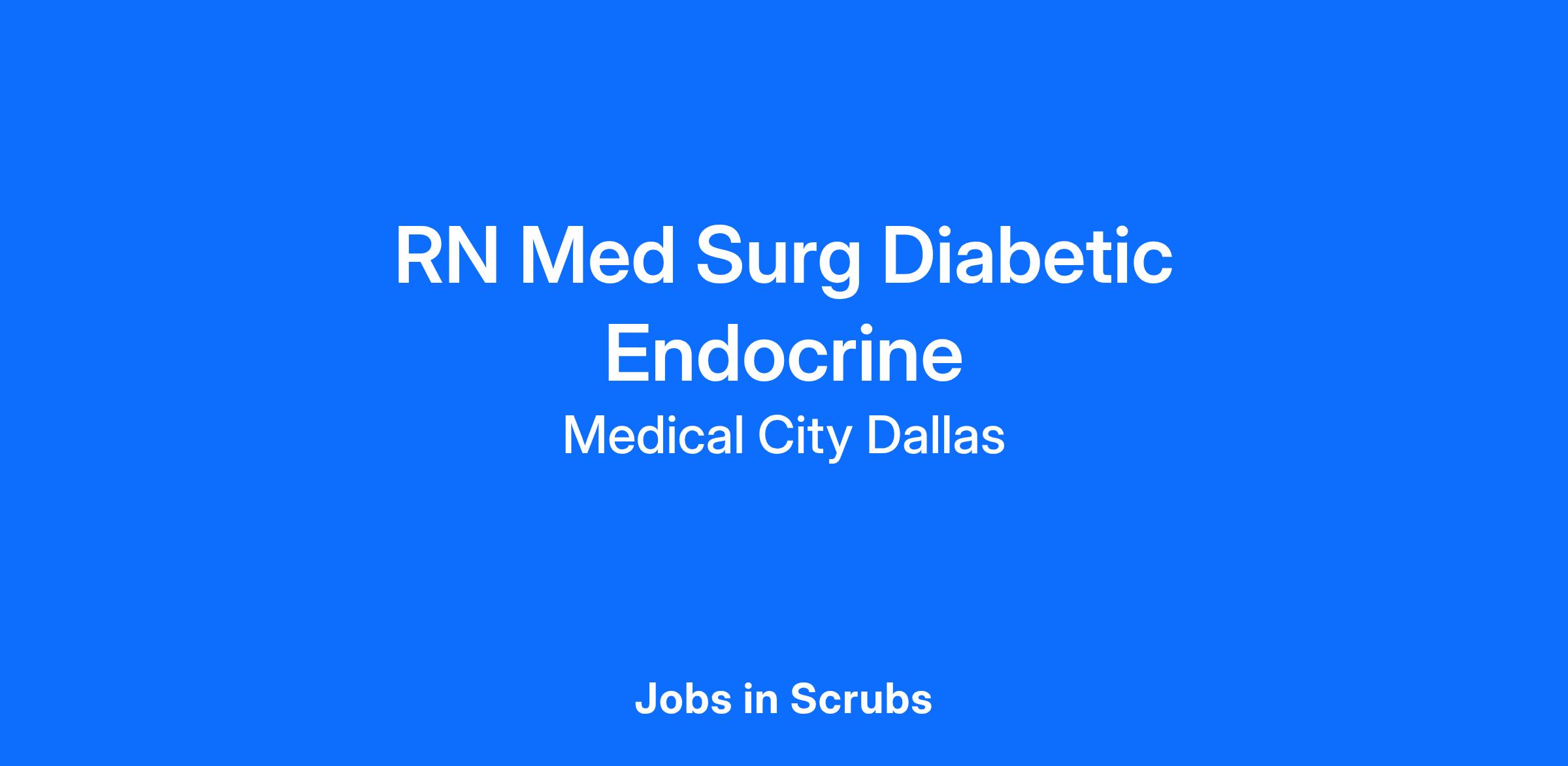 Do you want to be appreciated daily? Our nurses are celebrated for being on the front line, empathetic for patients. At Medical City Dallas our nurses set us apart from any other healthcare provider. We are seeking an RN Med Surg Diabetic Endocrine to join our healthcare family.