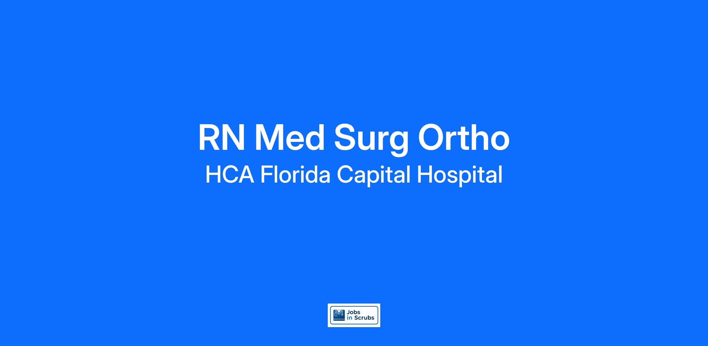 Do you want to be appreciated daily? Our nurses are celebrated for being on the front line, empathetic for patients. At HCA Florida Capital Hospital our nurses set us apart from any other healthcare provider. We are seeking a(an) RN Med Surg Ortho to join our healthcare family.