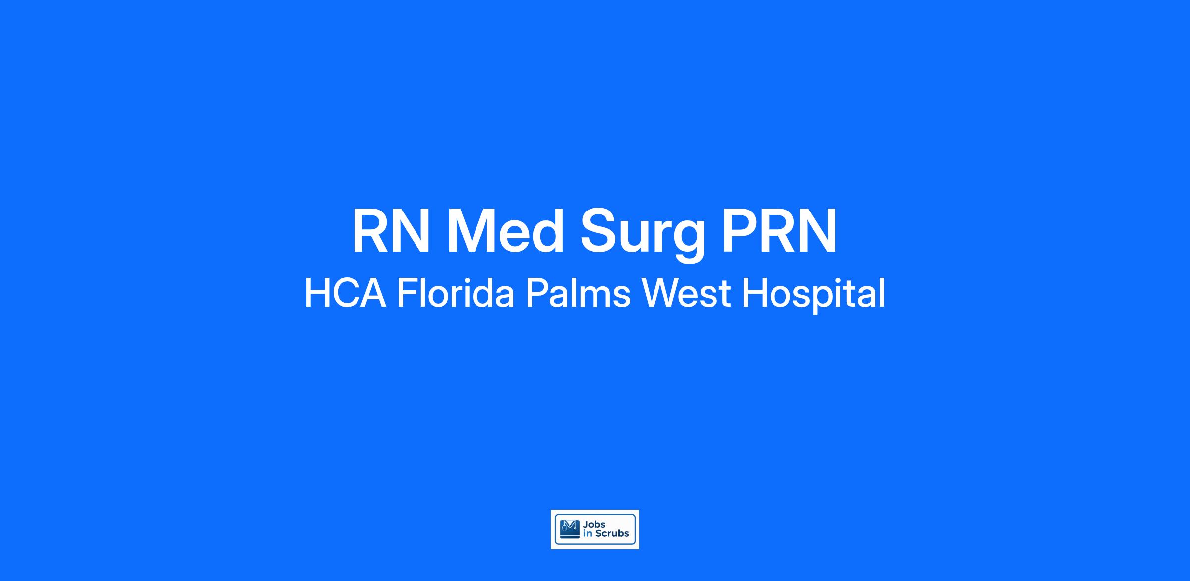 Do you have the PRN career opportunities as a(an) RN Med Surg PRN you want with your current employer? We have an exciting opportunity for you to join HCA Florida Palms West Hospital which is part of the nation's leading provider of healthcare services, HCA Healthcare.