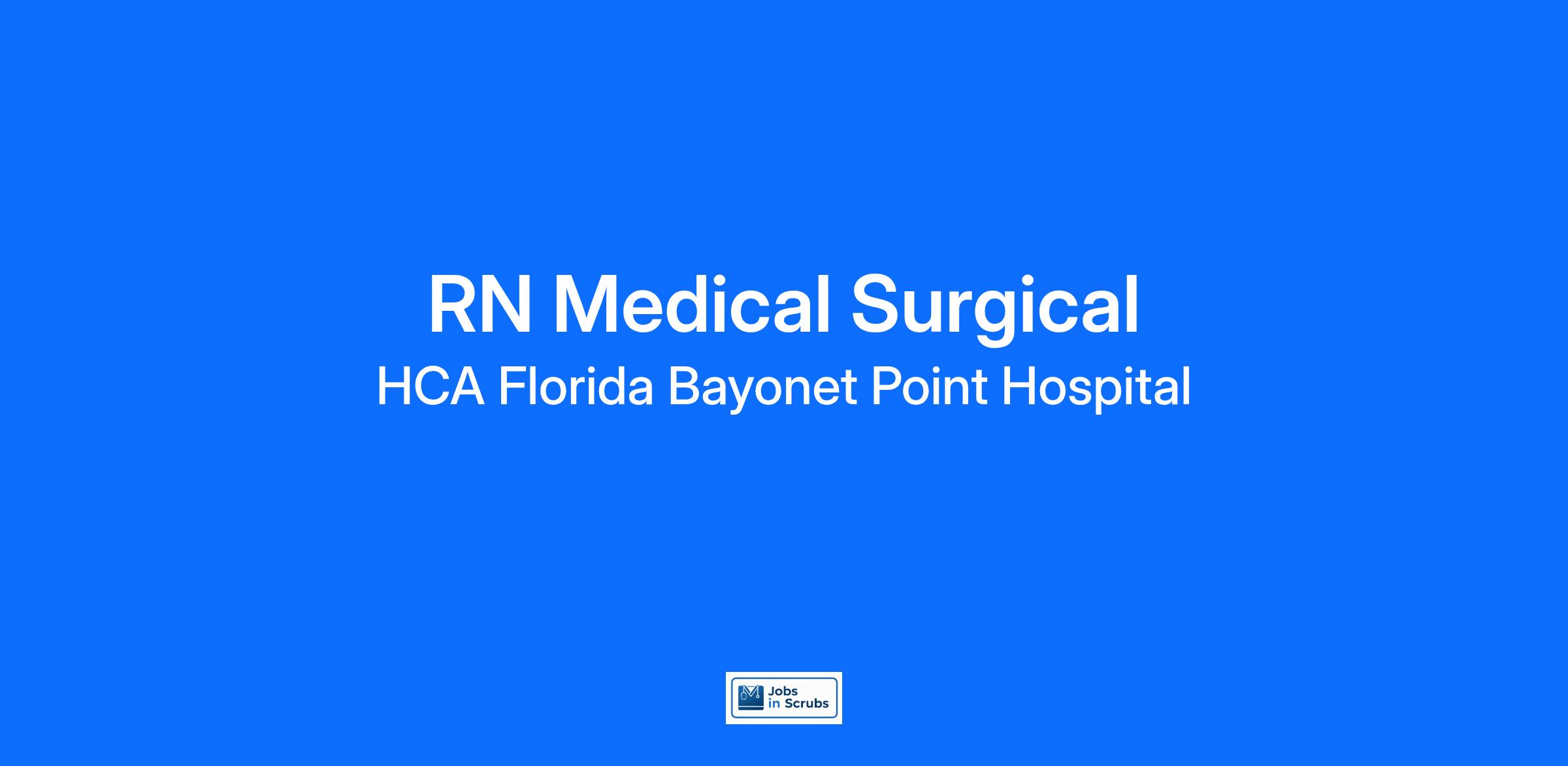 Do you have the career opportunities as a(an) RN Medical Surgical you want in your current role? We invest in what matters most to nurses like you – at home, at work, and at every stage in your career. We have an exciting opportunity for you to join HCA Florida Bayonet Point Hospital which is a part of the nation’s leading provider of healthcare services, HCA Healthcare.
