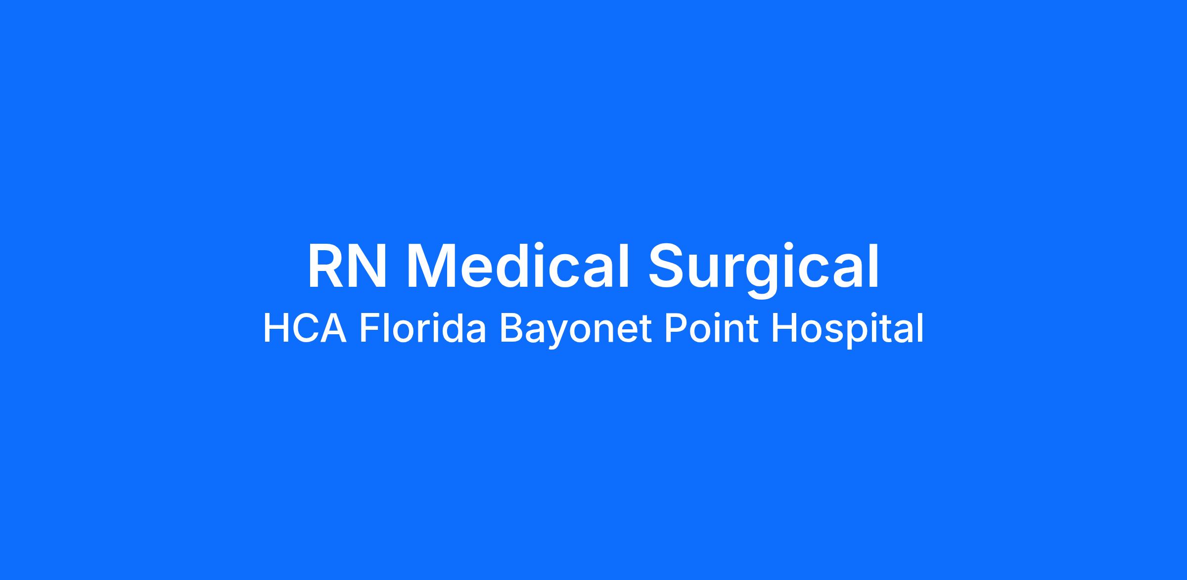 Are you looking for a place to deliver excellent care patients deserve? At HCA Florida Bayonet Point Hospital we support our colleagues in their positions. Join our Team as a(an) RN Medical Surgical and access programs to assist with every stage of your career.