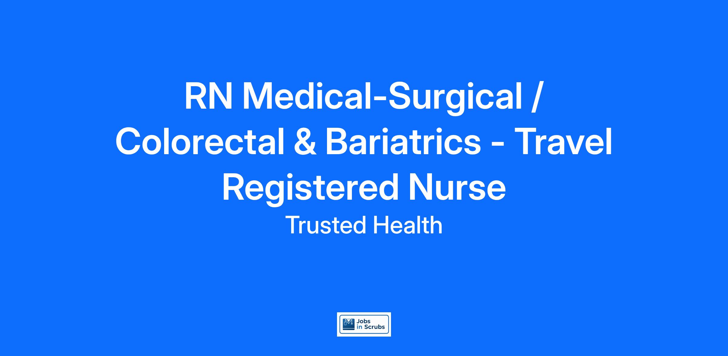 Trusted is seeking an experienced nurse for this exciting travel nursing assignment. Trusted has streamlined the travel nursing experience by enabling nurses to apply directly to jobs without the need for recruiters. This unique approach provides more transparency, eliminates pesky calls from recruiters, and puts more money in your pocket. Join the thousands of nurses across the country who have already made the switch to a more modern way to work.