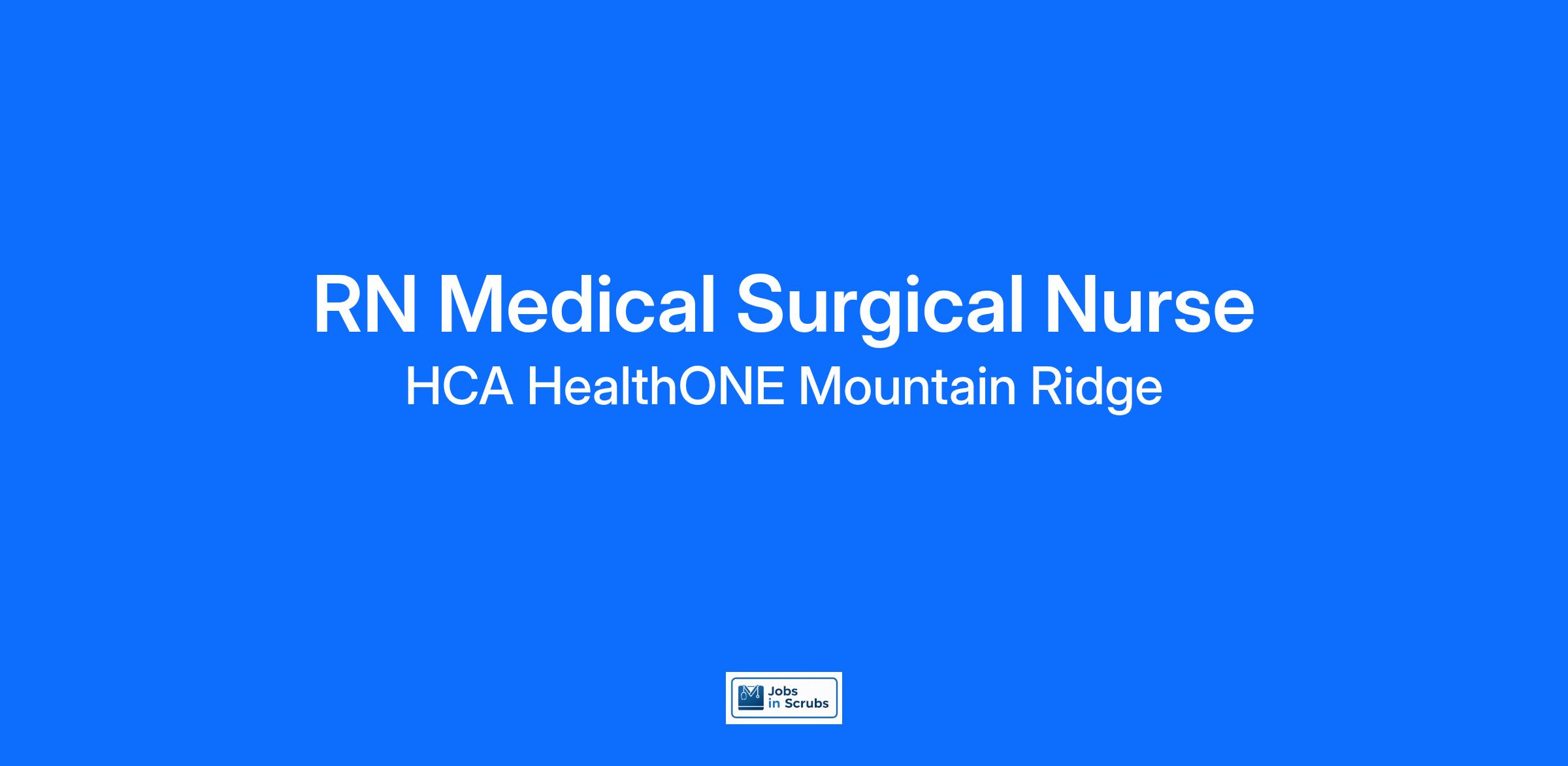 Do you want to be appreciated daily? Our nurses are celebrated for being on the front line, empathetic for patients. At HCA HealthONE Mountain Ridge our nurses set us apart from any other healthcare provider. We are seeking a(an) RN Medical Surgical to join our healthcare family.