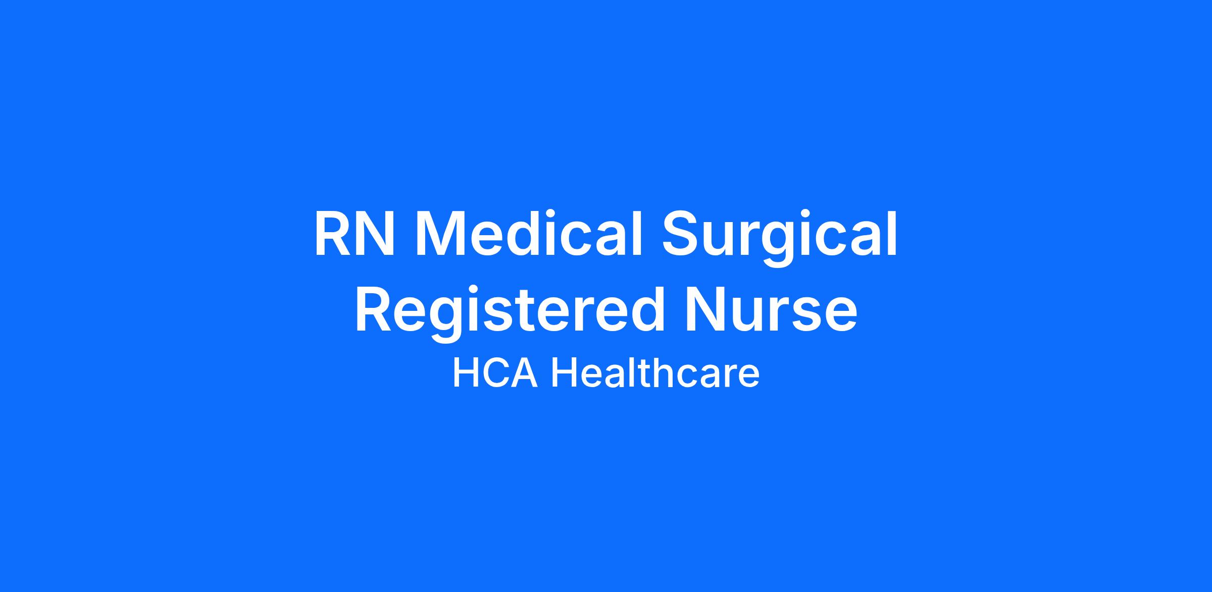 Come join our team as a(an) RN Medical Surgical Med Surg Registered Nurse. We care for our community! Just last year, HCA Healthcare and our colleagues donated $13.8 million dollars to charitable organizations. Apply Today!
