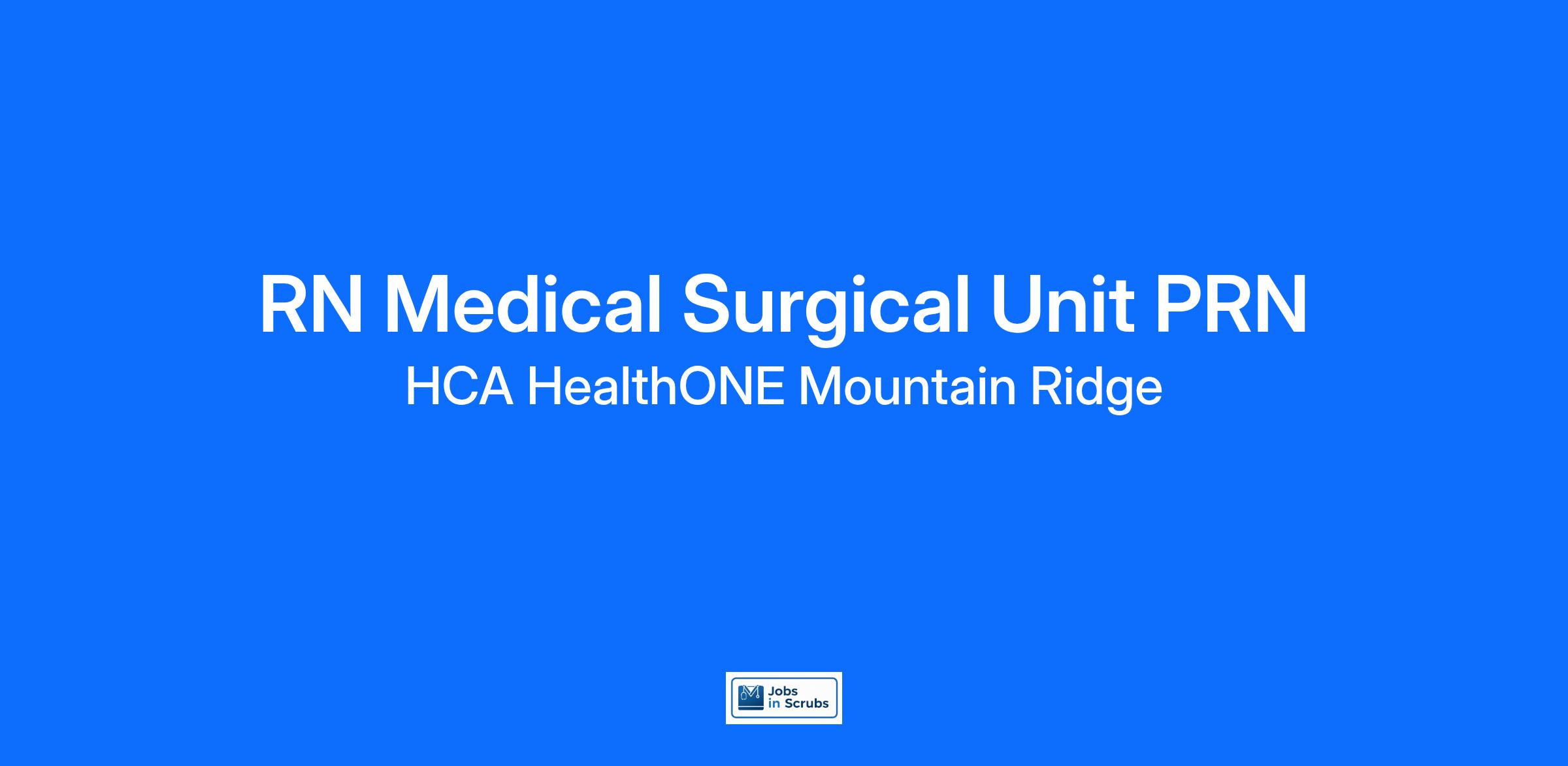 HCA HealthONE Mountain Ridge is committed to investing in the latest technology enabling nurses to work more efficiently. Are you passionate about delivering patient-centered care? Submit your application for RN Medical Surgical PRN position and spend more time at the bedside with the patient.