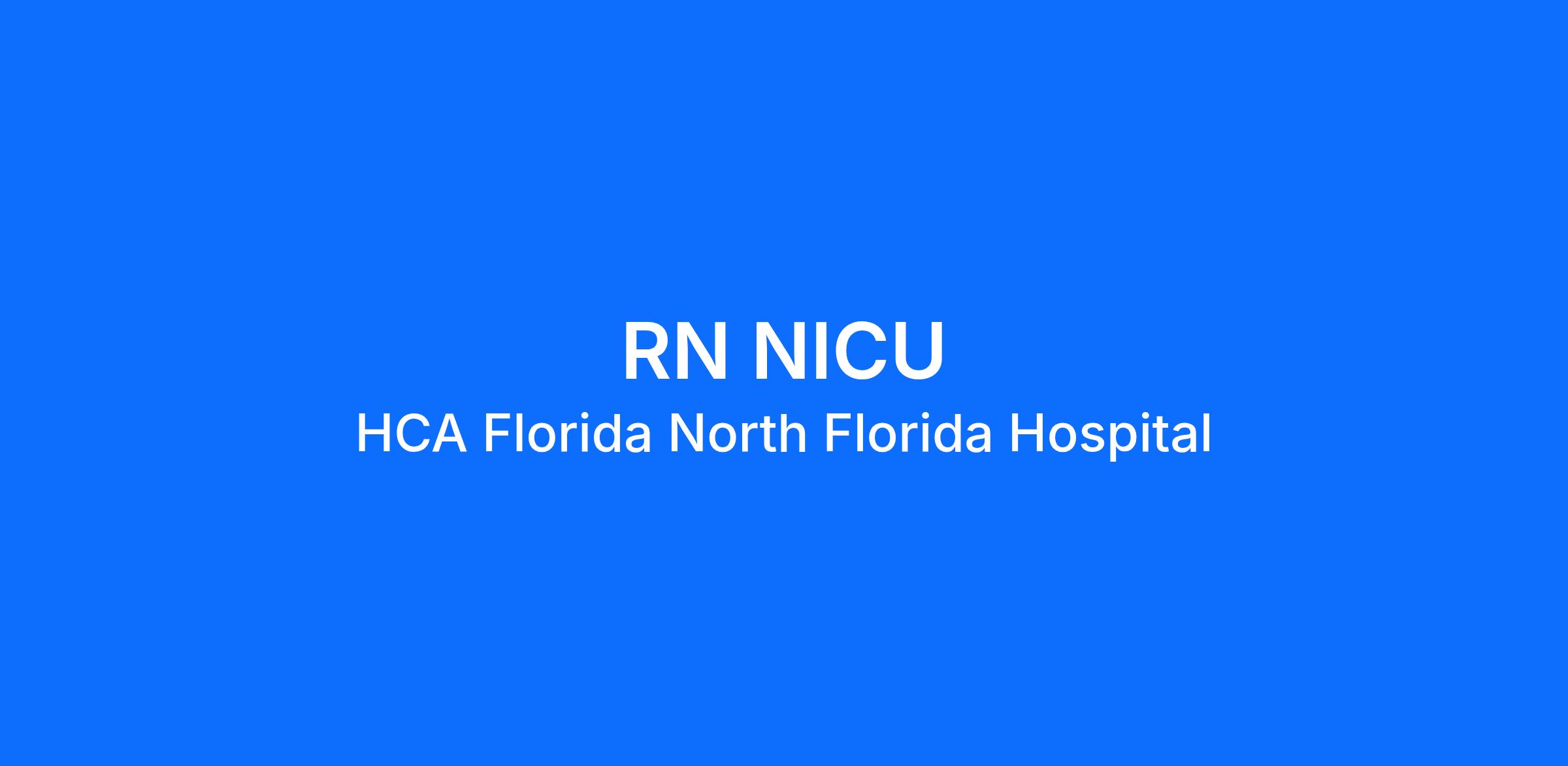 Do you want to be appreciated daily? Our nurses are celebrated for being on the front line, empathetic for patients. At HCA Florida North Florida Hospital our nurses set us apart from any other healthcare provider. We are seeking a(an) RN NICU to join our healthcare family.