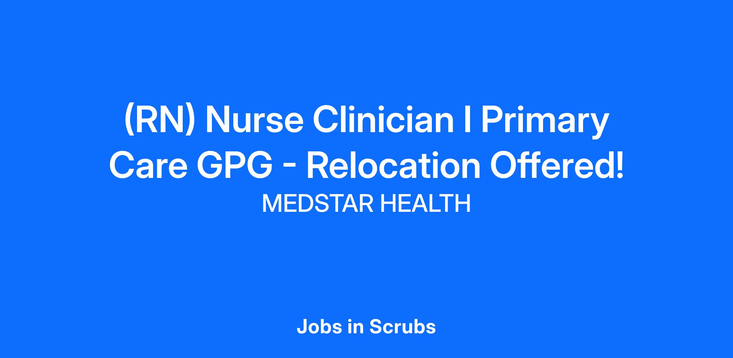(RN) Nurse Clinician I Primary Care GPG - Relocation Offered!