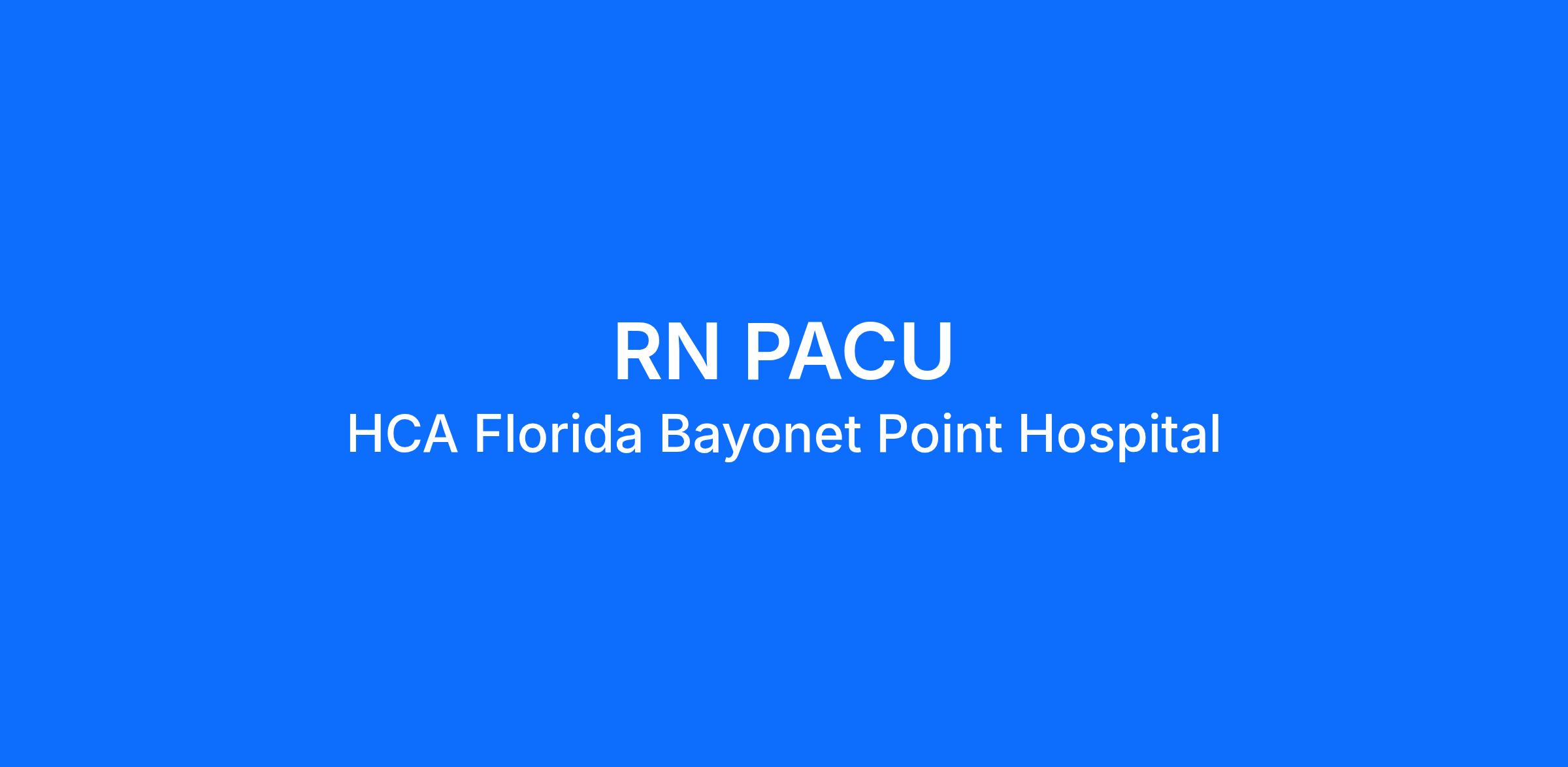 HCA Florida Bayonet Point Hospital is committed to investing in the latest technology enabling nurses to work more efficiently. Are you passionate about delivering patient-centered care? Submit your application for RN PACU position and spend more time at the bedside with the patient.