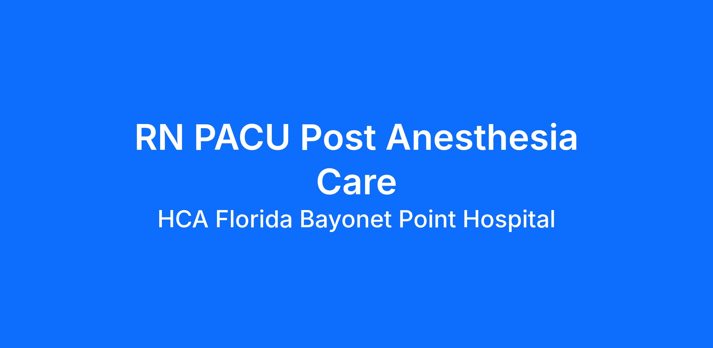 Do you currently have an opportunity to make a real impact with your work? With over 2,000 sites of care and serving over 31.2 million patient interactions every year, nurses at HCA Florida Bayonet Point Hospital have the opportunity to make a real impact. As a(an) RN PACU Post Anesthesia Care you can be a part of change.