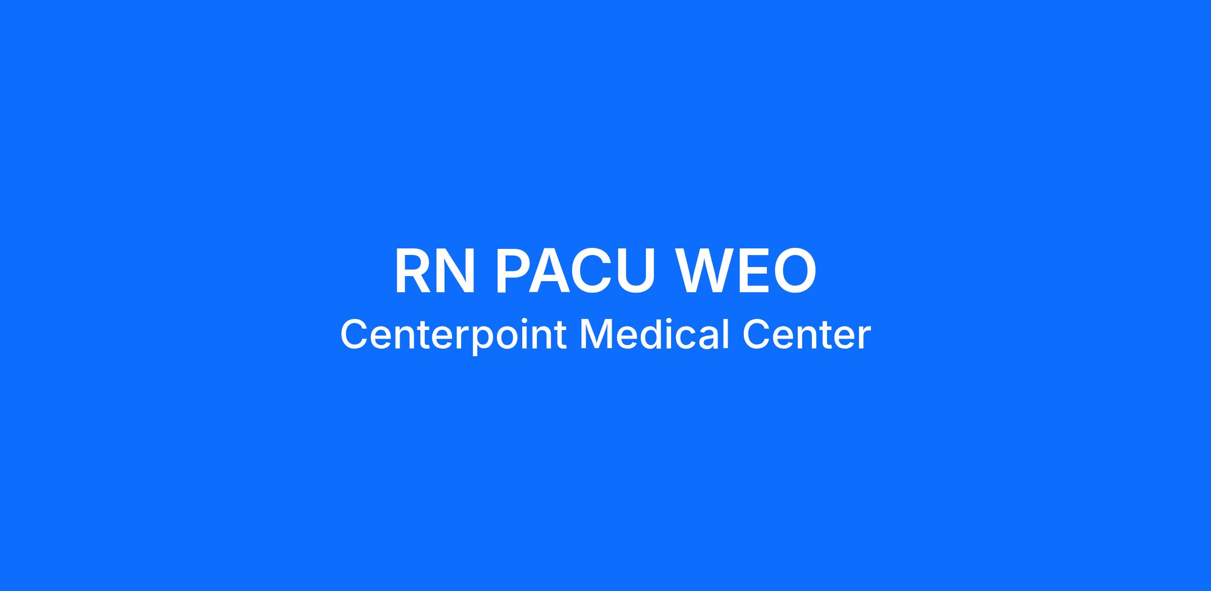If this opportunity is your next step in your career path, we encourage you to apply for our RN PACU WEO opening. We review all applications. Qualified candidates will be contacted by a member of our team. We are interviewing, apply today!