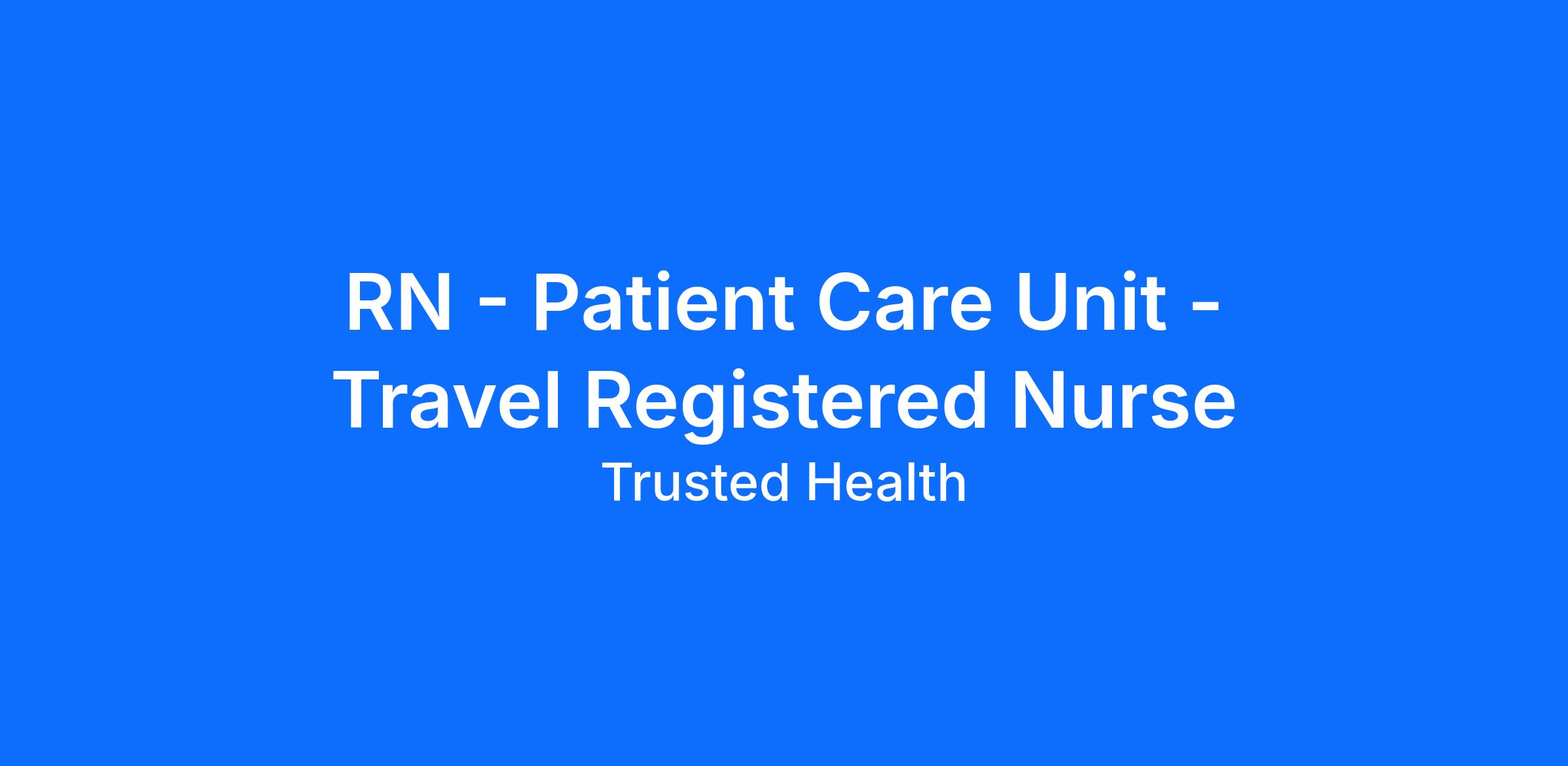 Trusted is seeking an experienced nurse for this exciting travel nursing assignment. Trusted has streamlined the travel nursing experience by enabling nurses to apply directly to jobs without the need for recruiters. This unique approach provides more transparency, eliminates pesky calls from recruiters, and puts more money in your pocket. Join the thousands of nurses across the country who have already made the switch to a more modern way to work.