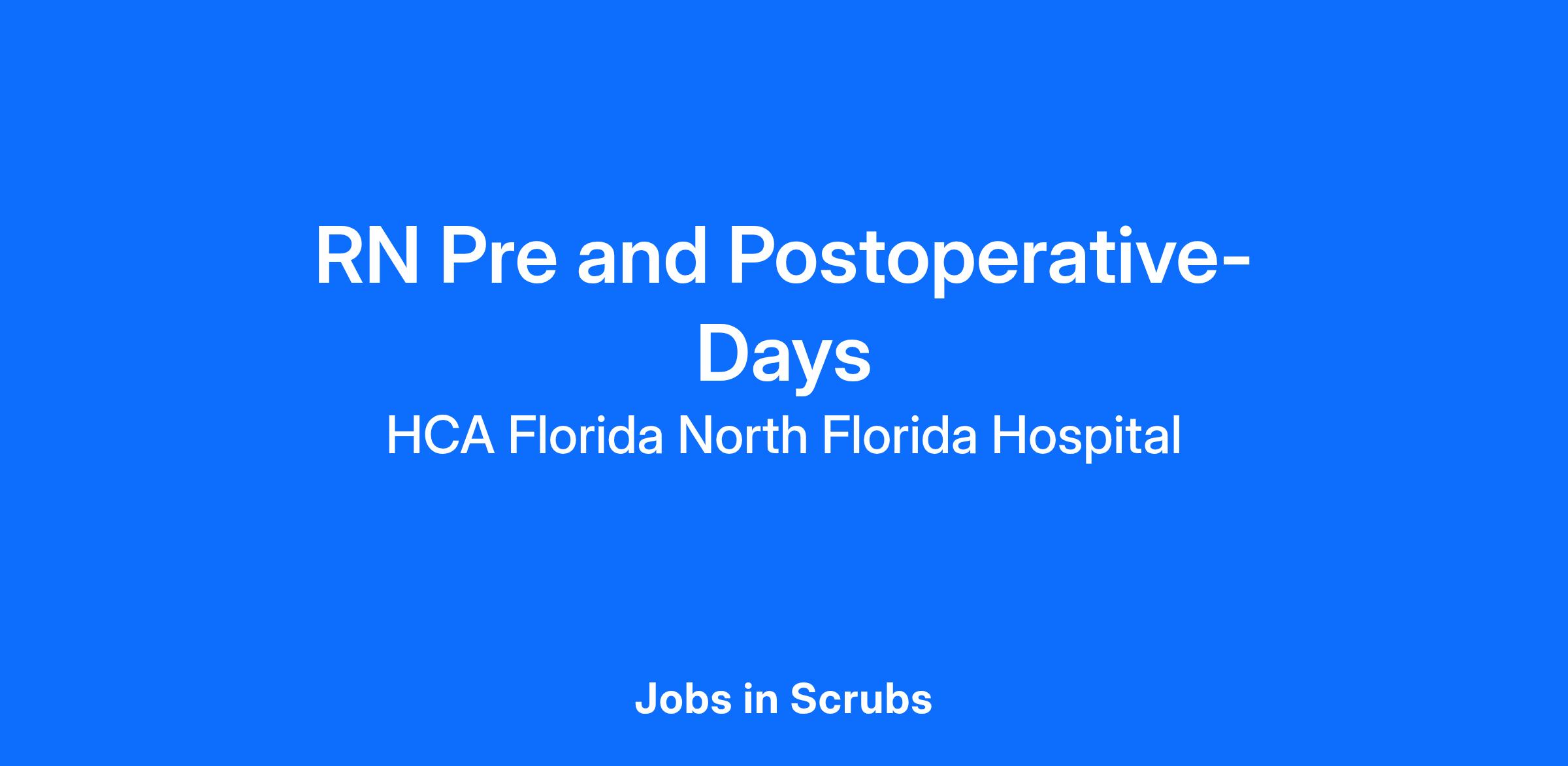 Do you have the career opportunities as a RN Pre and Postoperative- Days you want in your current role? We invest in what matters most to nurses like you – at home, at work, and at every stage in your career. We have an exciting opportunity for you to join HCA Florida North Florida Hospital which is a part of the nation’s leading provider of healthcare services, HCA Healthcare.