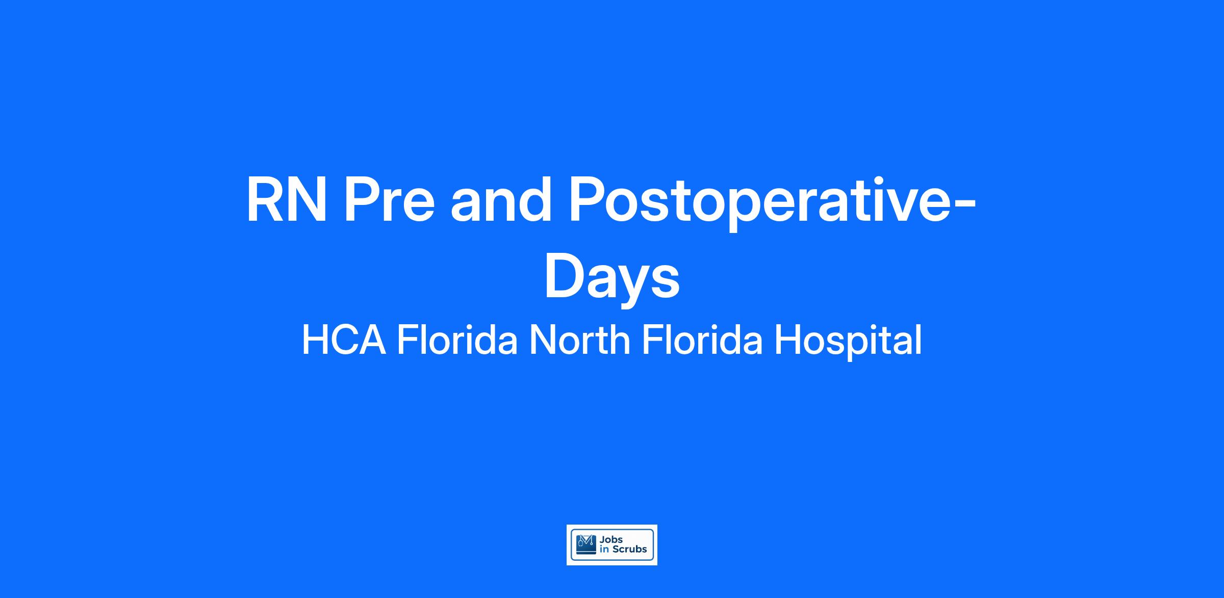 Do you have the career opportunities as a RN Pre and Postoperative- Days you want in your current role? We invest in what matters most to nurses like you – at home, at work, and at every stage in your career. We have an exciting opportunity for you to join HCA Florida North Florida Hospital which is a part of the nation’s leading provider of healthcare services, HCA Healthcare.