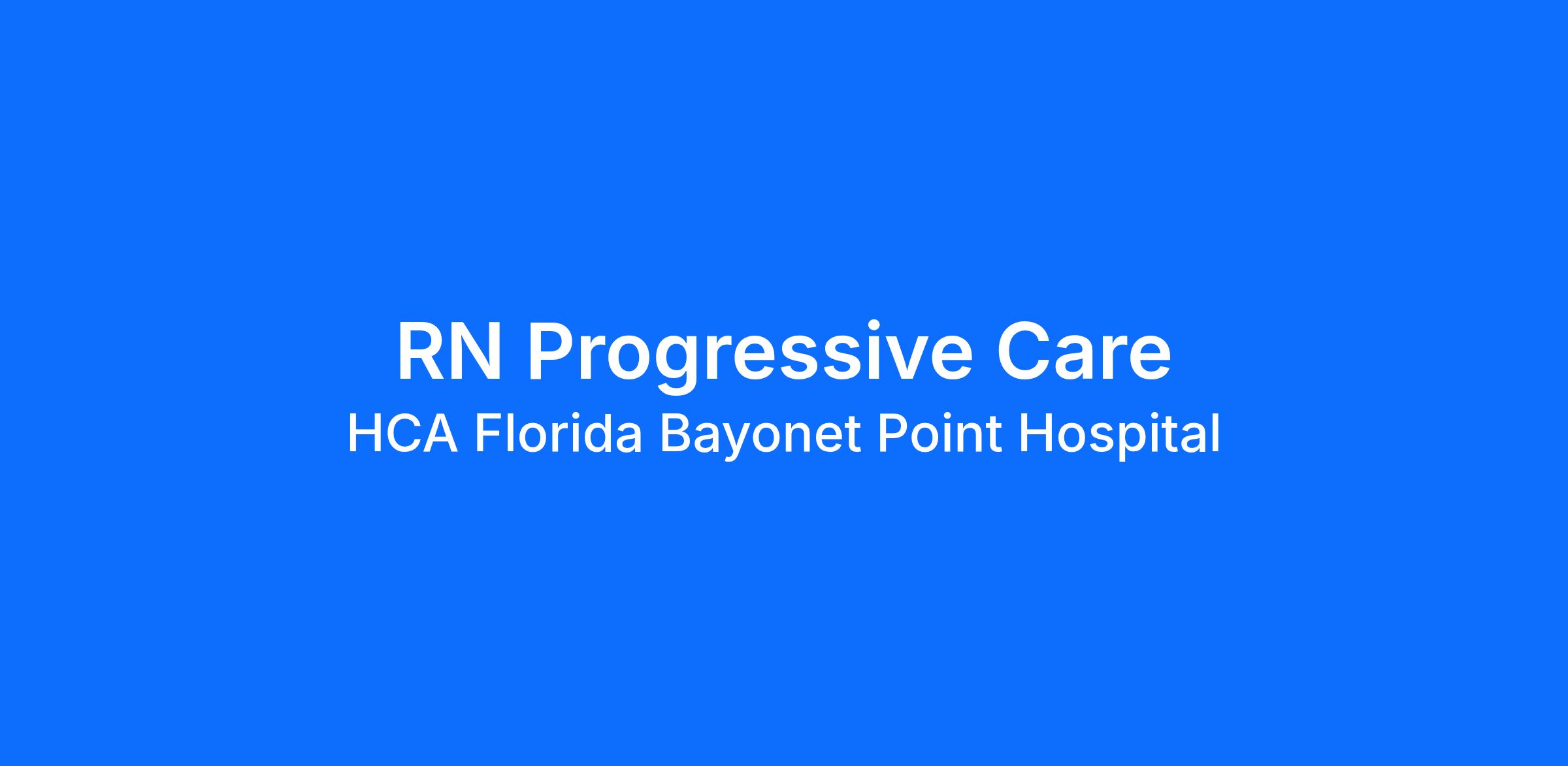 Are you looking for a place to deliver excellent care patients deserve? At HCA Florida Bayonet Point Hospital we support our colleagues in their positions. Join our Team as a(an) RN Progressive Care and access programs to assist with every stage of your career.