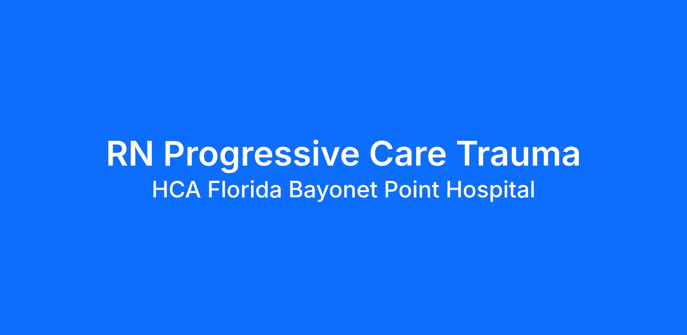 Do you want to be appreciated daily? Our nurses are celebrated for being on the front line, empathetic for patients. At HCA Florida Bayonet Point Hospital our nurses set us apart from any other healthcare provider. We are seeking a(an) RN Progressive Care Trauma to join our healthcare family.