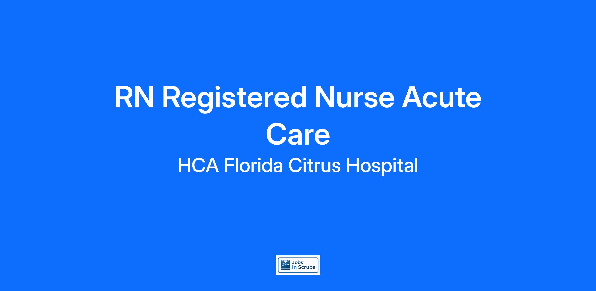 Experience the HCA Healthcare difference where colleagues are trusted, valued members of our healthcare team. Grow your career with an organization committed to delivering respectful, compassionate care, and where the unique and intrinsic worth of each individual is recognized. Submit your application for our Neuro Medical Telemetry Registered Nurse position at HCA Florida Citrus Hospital.