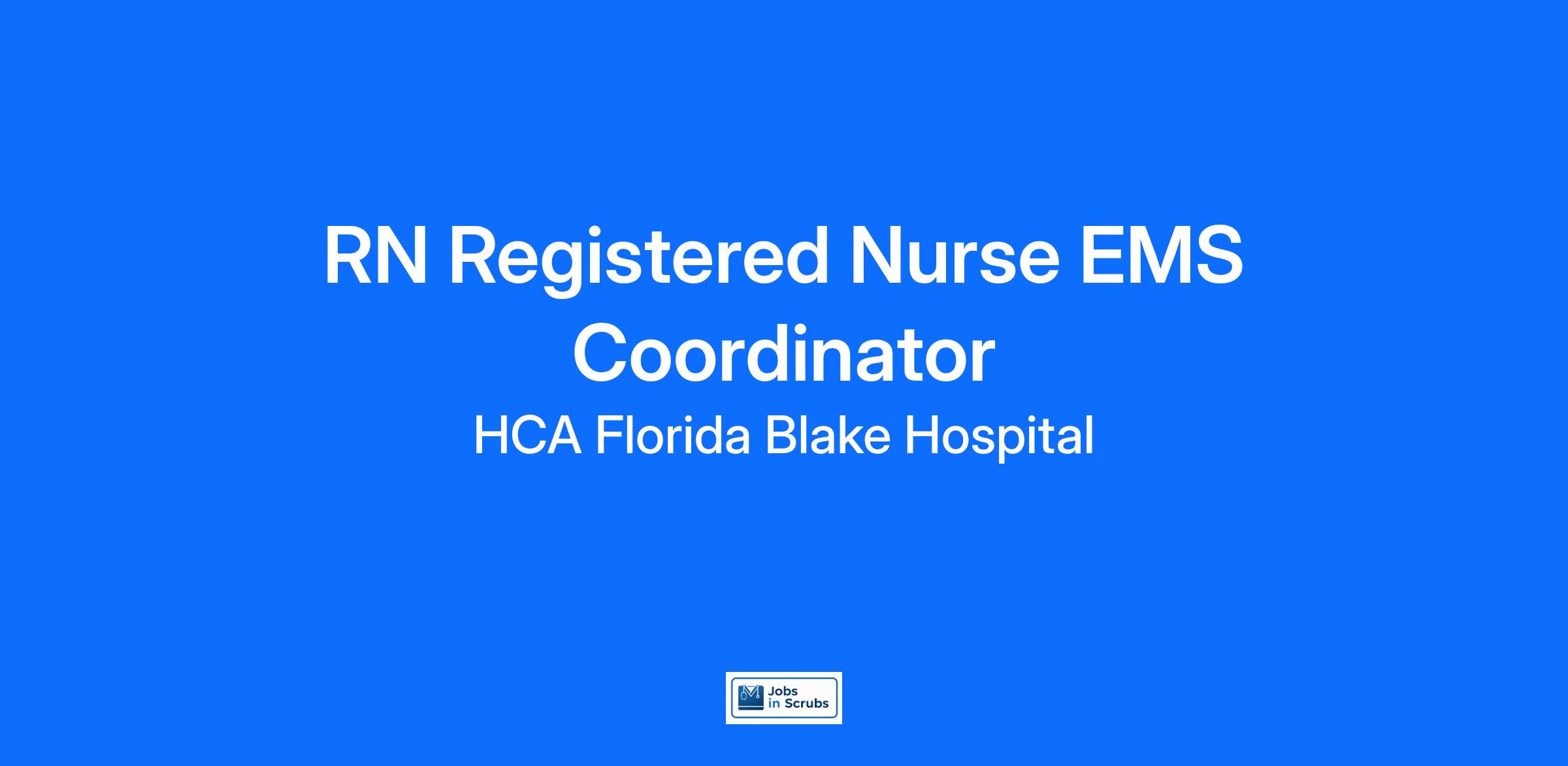 Are you looking for a place to deliver excellent care patients deserve? At HCA Florida Blake Hospital we support our colleagues in their positions. Join our Team as a(an) RN Registered Nurse EMS Coordinator and access programs to assist with every stage of your career.