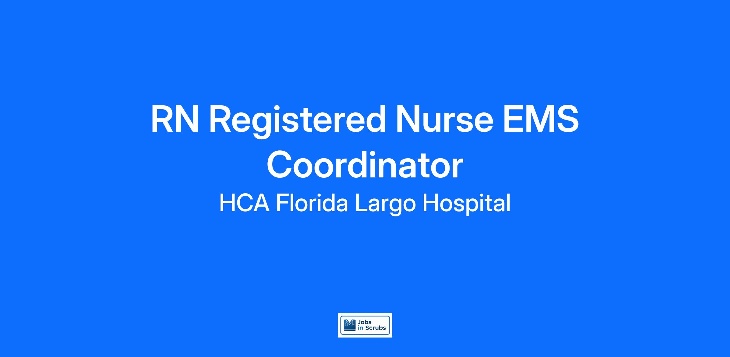 Do you currently have an opportunity to make a real impact with your work? With over 2,000 sites of care and serving over 31.2 million patient interactions every year, nurses at HCA Florida Largo Hospital have the opportunity to make a real impact. As a Registered Nurse EMS Coordinator you can be a part of change.