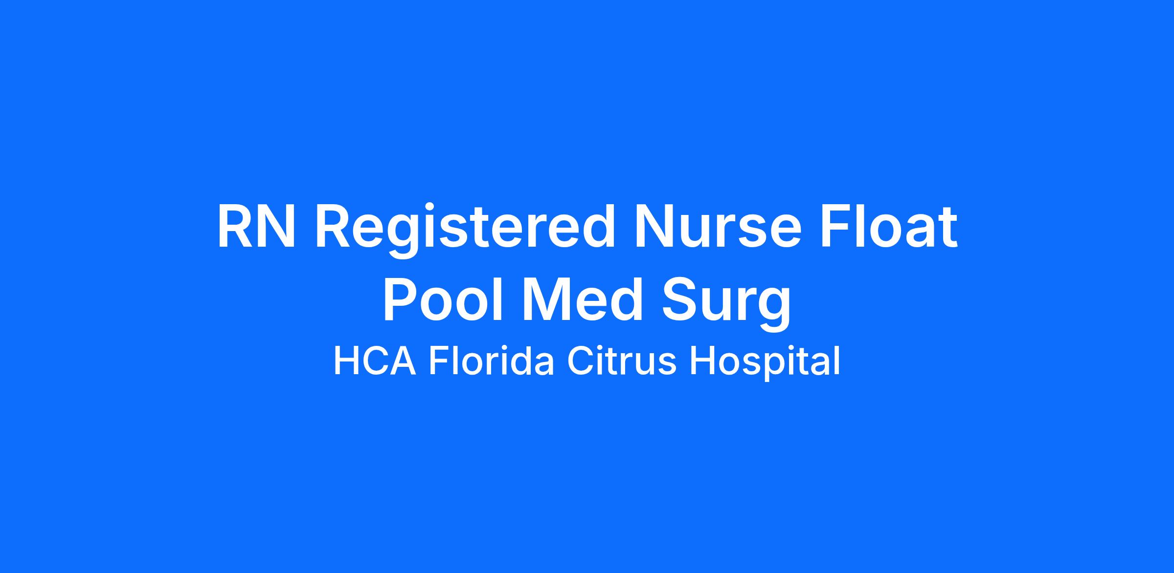 Do you want to be appreciated daily? Our nurses are celebrated for being on the front line, empathetic for patients. At HCA Florida Citrus Hospital our nurses set us apart from any other healthcare provider. We are seeking a(an) RN Registered Nurse Float Pool Med Surg to join our healthcare family.
