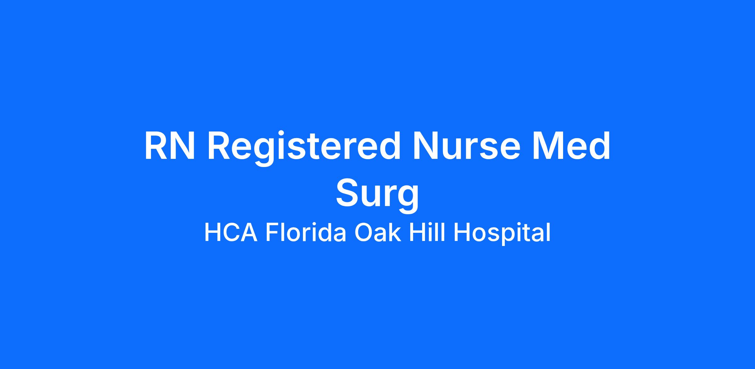 Do you have the career opportunities as a RN Registered Nurse Med Surg you want in your current role? We invest in what matters most to nurses like you – at home, at work, and at every stage in your career. We have an exciting opportunity for you to join HCA Florida Oak Hill Hospital which is a part of the nation’s leading provider of healthcare services, HCA Healthcare.