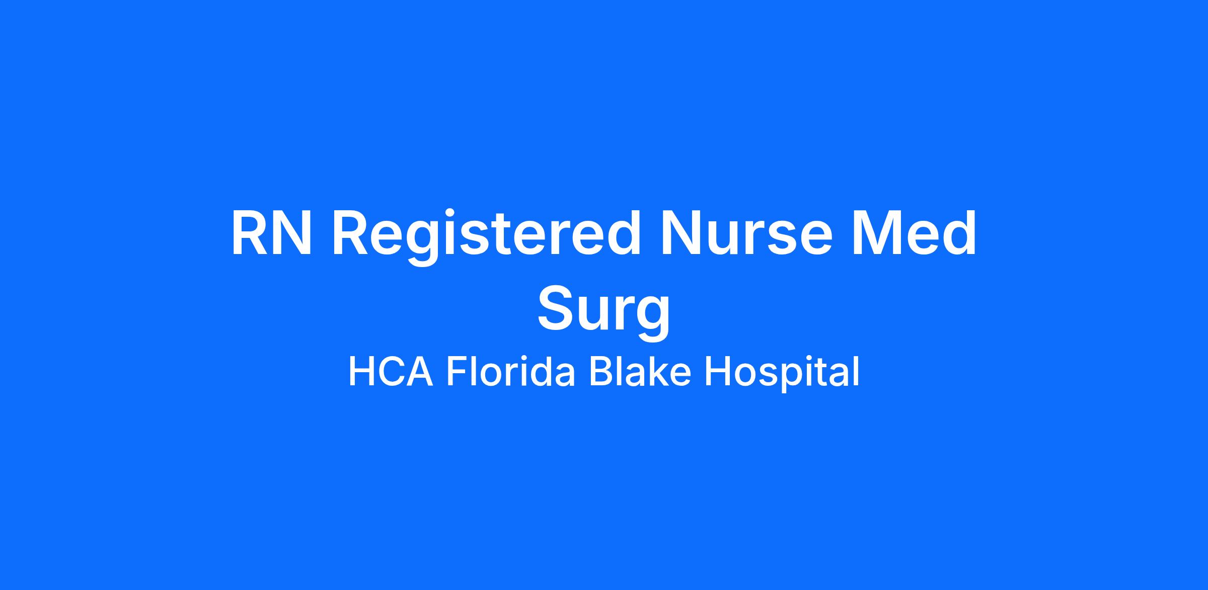 Do you want to be appreciated daily? Our nurses are celebrated for being on the front line, empathetic for patients. At HCA Florida Blake Hospital our nurses set us apart from any other healthcare provider. We are seeking a(an) RN Registered Nurse Med Surg to join our healthcare family.